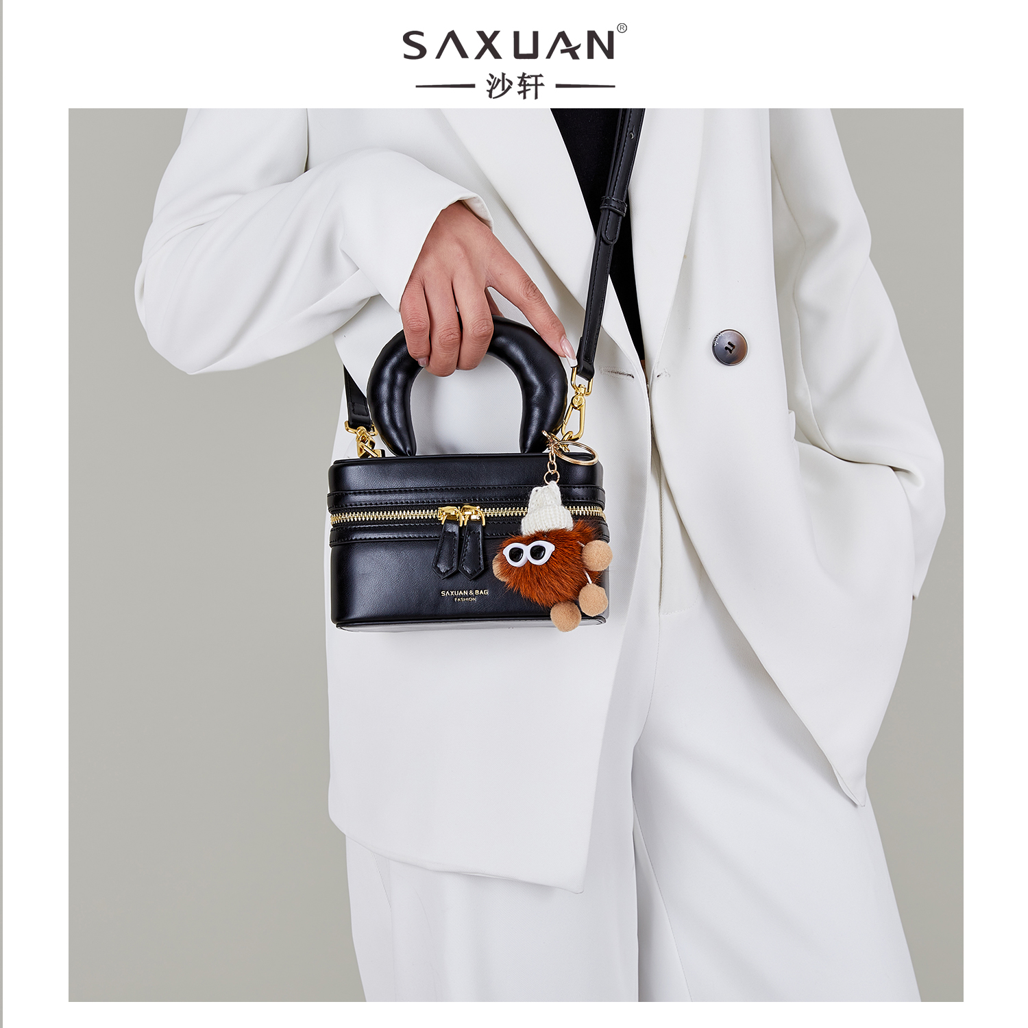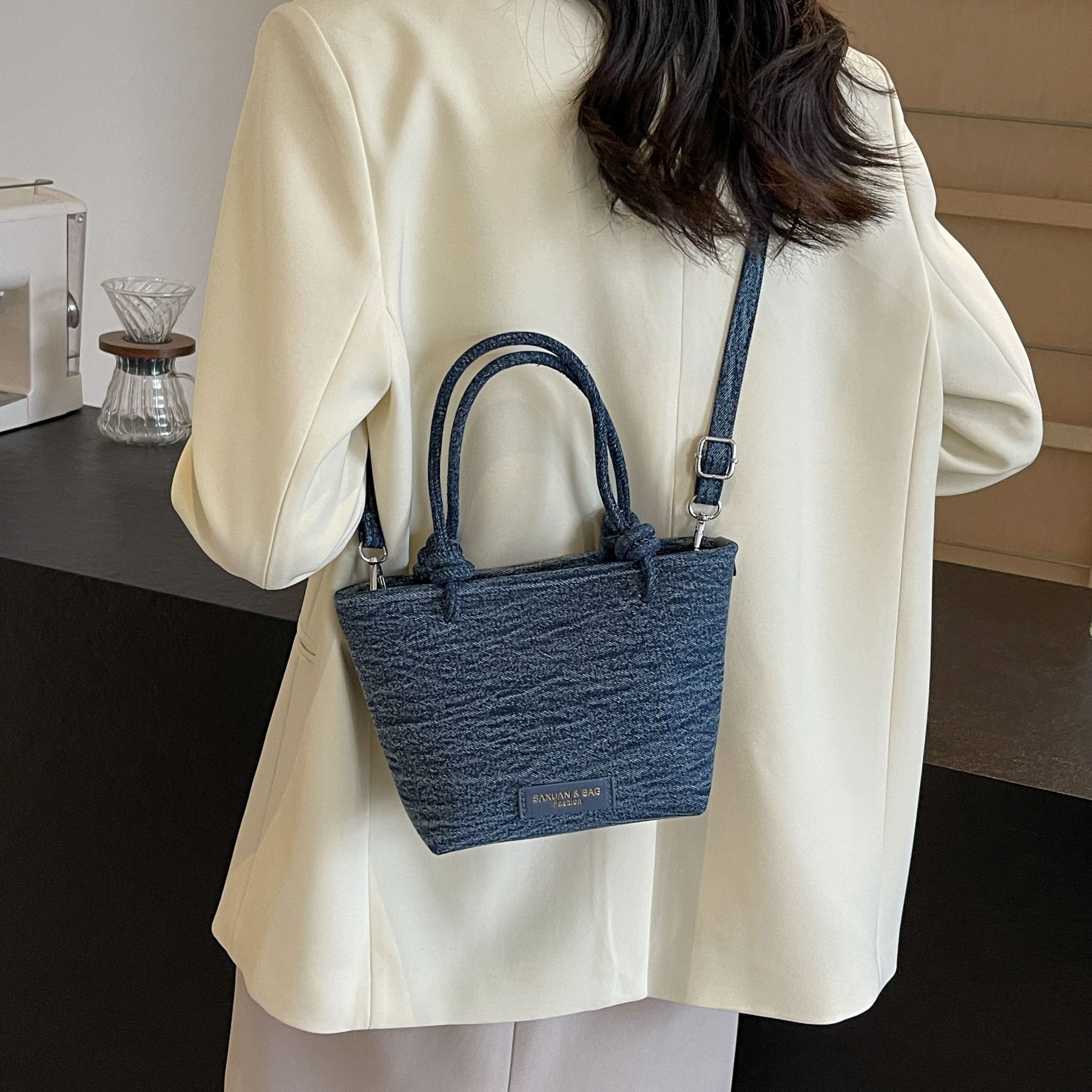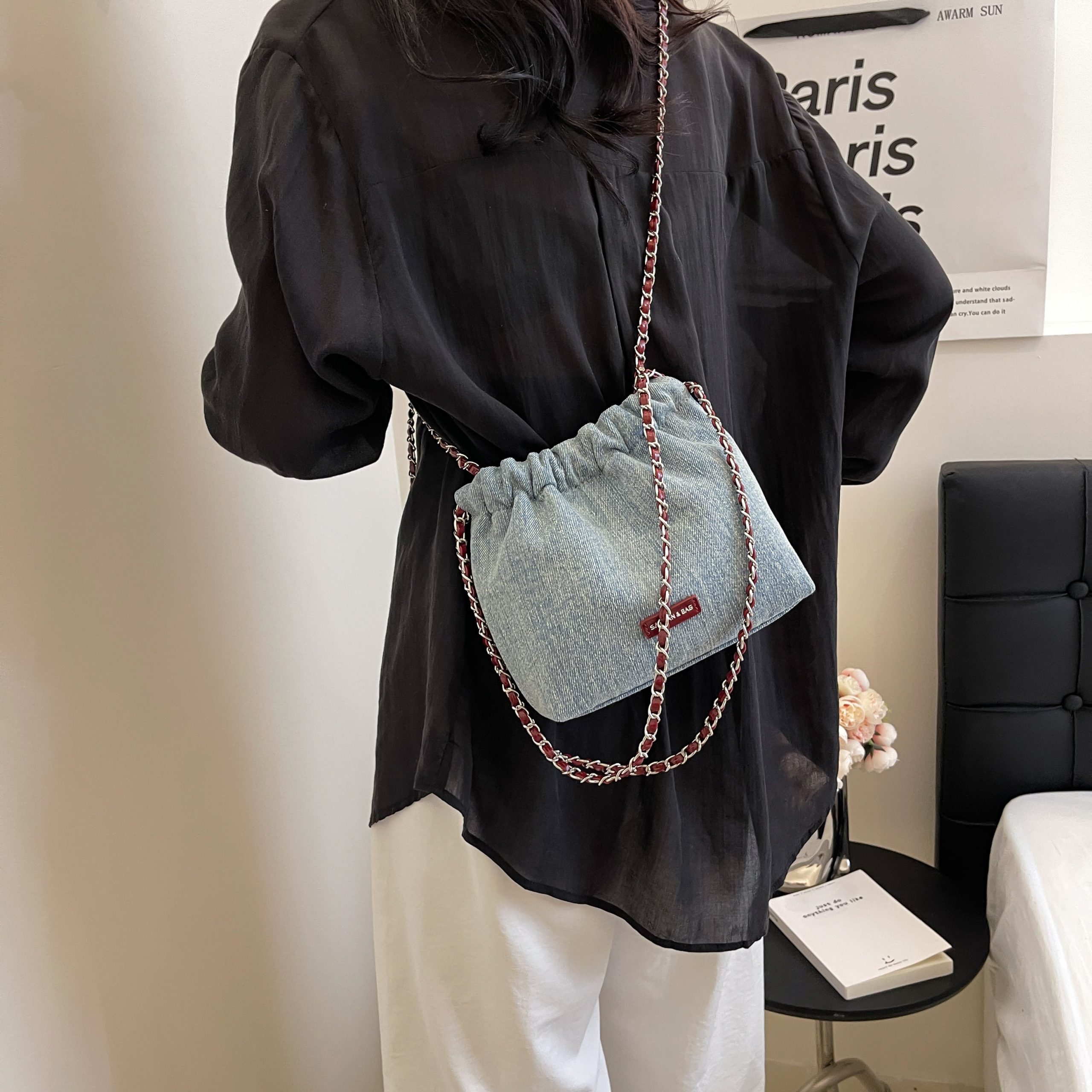 Dual-Strap Leather Bucket Bag with Patterned Accents