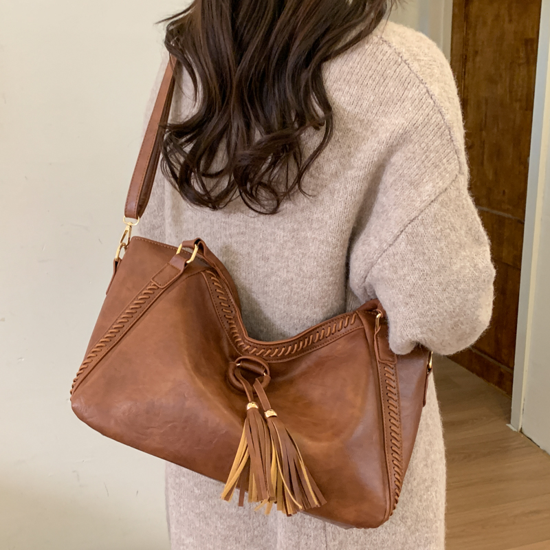 Tassel-Accented Ruched Tote Bag