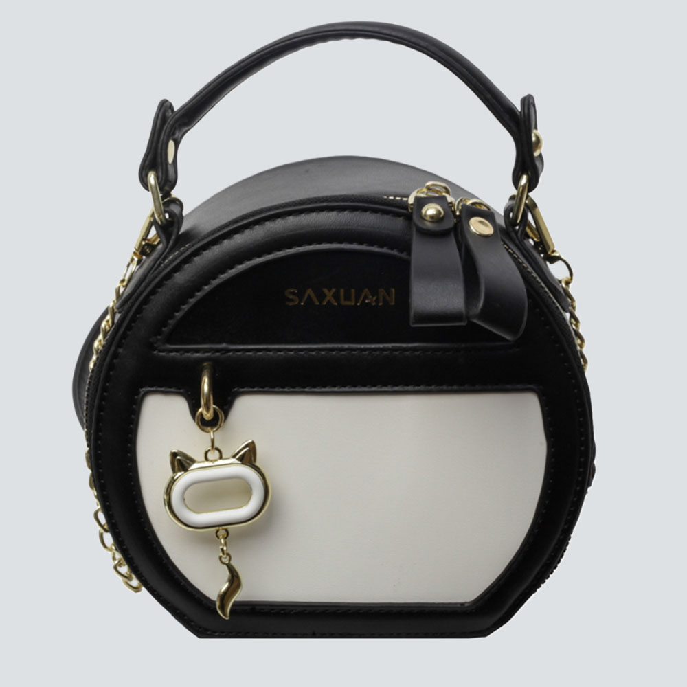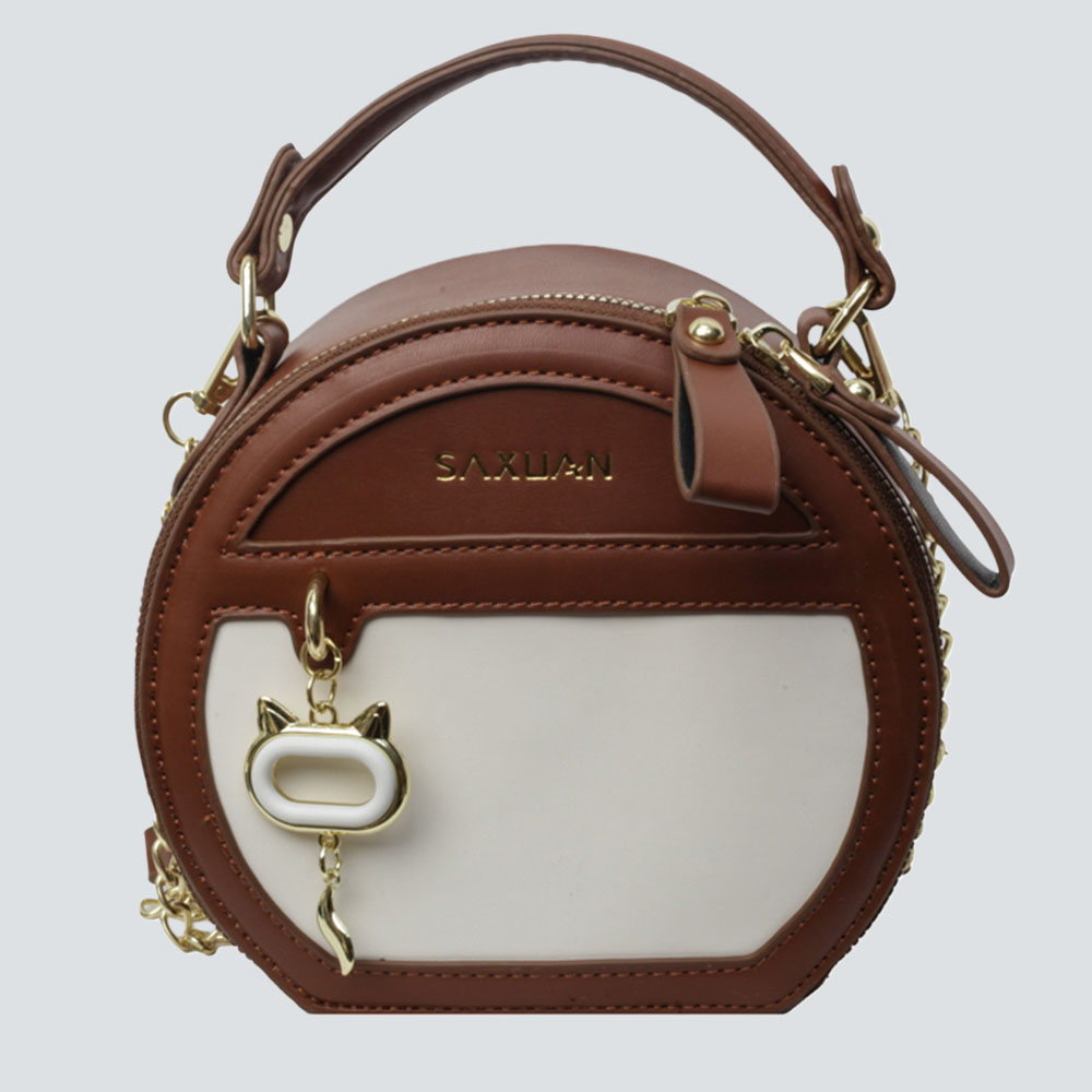 In the collision of lines and materials, this round bag takes color-block patchwork as the base, blending the delicacy of matte leather and the cold luster of metal chain, unfolding a layered tactile experience upon touch. The mini silhouette supports an exquisite aura, and the dual carrying methods of hand-held and crossbody fit the neatness of commuting and the softness of dates.The logo embossing and charm details are the footnotes of low-key luxury; both brown-white and black-white colors precipitate a relaxed retro atmosphere, and the capacity just holds small personal items, allowing elegance and practicality to coexist gracefully in a small space.