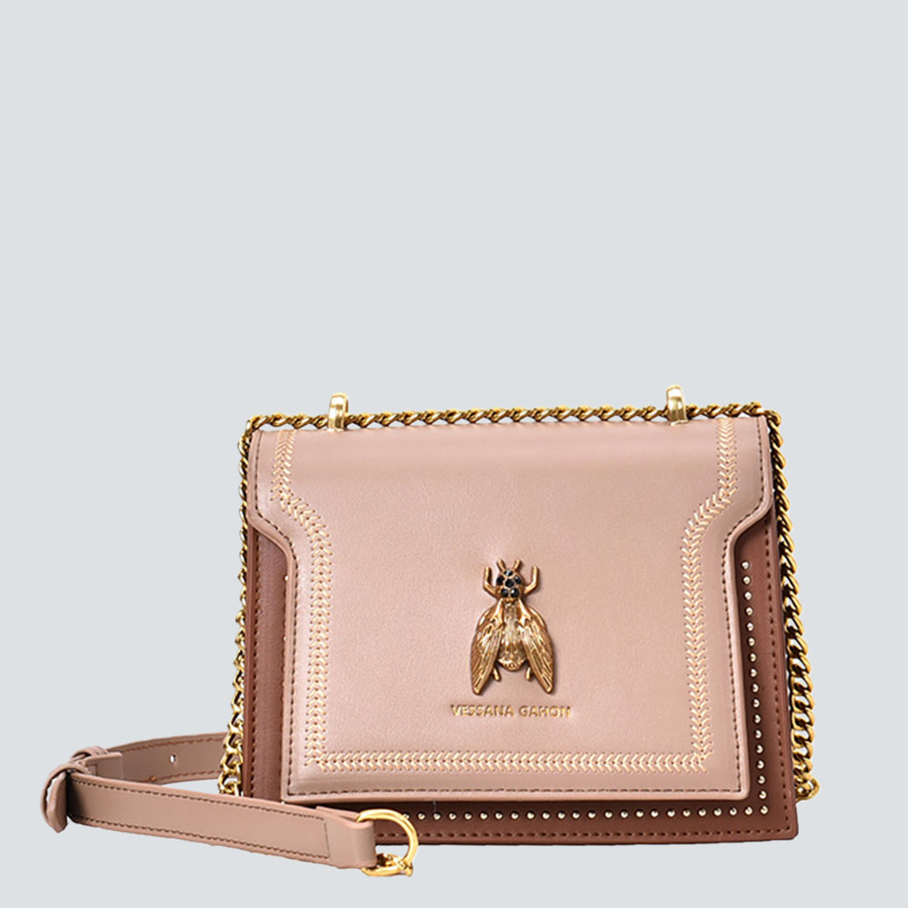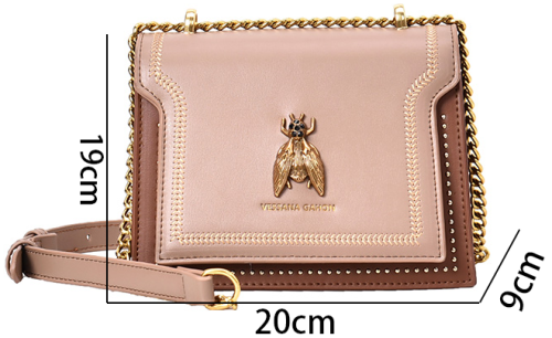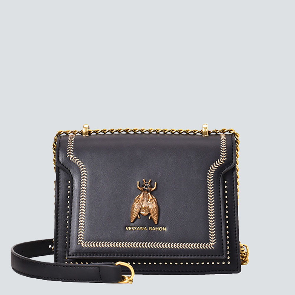 Crafted for the connoisseur of iconic design, this structured crossbody redefines luxury through intentional embellishment and precision. Made from smooth, high-quality leather (in rich, sophisticated hues), its crisp silhouette balances polished elegance with tactile depth—anchored by intricate contrast stitching and a statement bee accent that adds a layer of timeless, iconic character.The compact yet functional interior holds daily essentials (phone, cardholder, lipstick) without bulk, while the convertible chain-leather strap adapts seamlessly to daytime errands or evening events. Designed to age gracefully (retaining its polished appeal over time), this bag is more than an accessory: it’s a wearable symbol of refined taste that infuses every look with understated opulence.