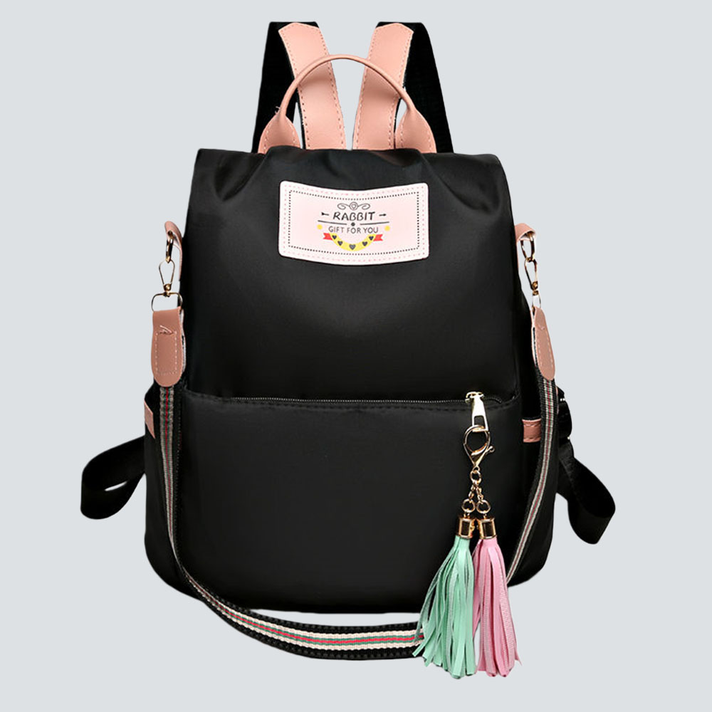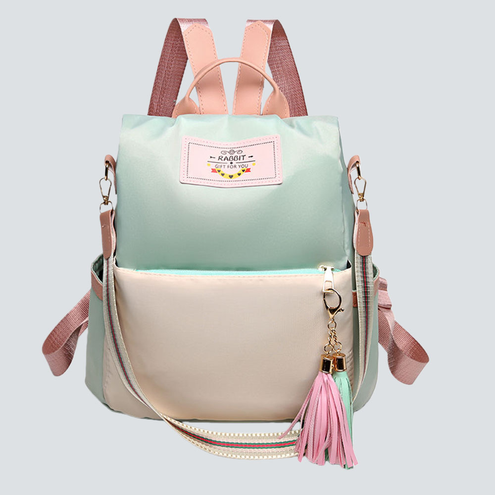 Elevate your daily style with this sleek two-tone backpack: lightweight water-resistant nylon, delicate tassel detail, and versatile design for commutes, travels, or casual outings.