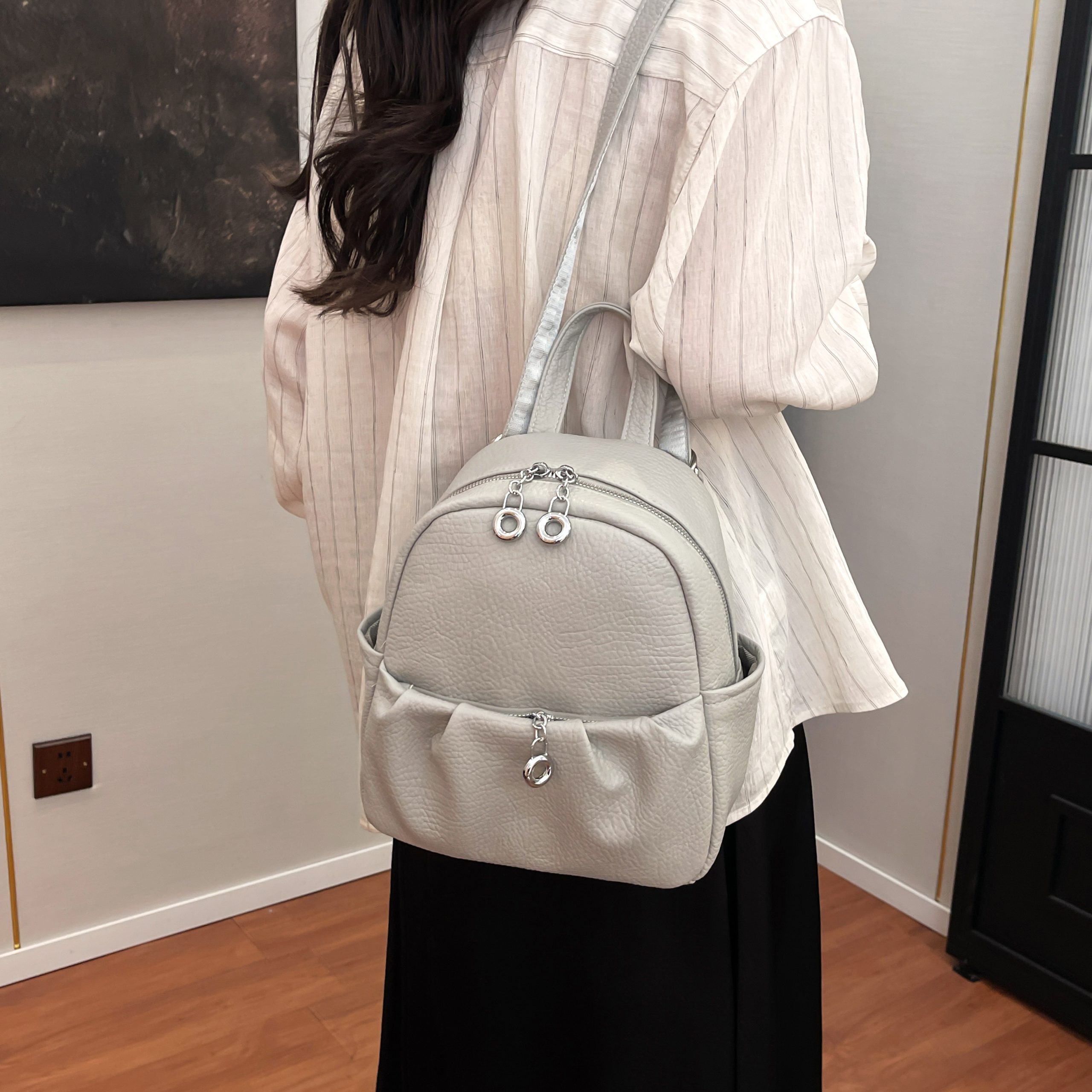 Chic Minimalist Two-Tone Backpack with Tasse
