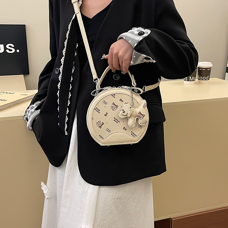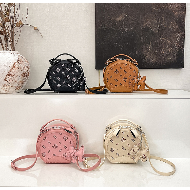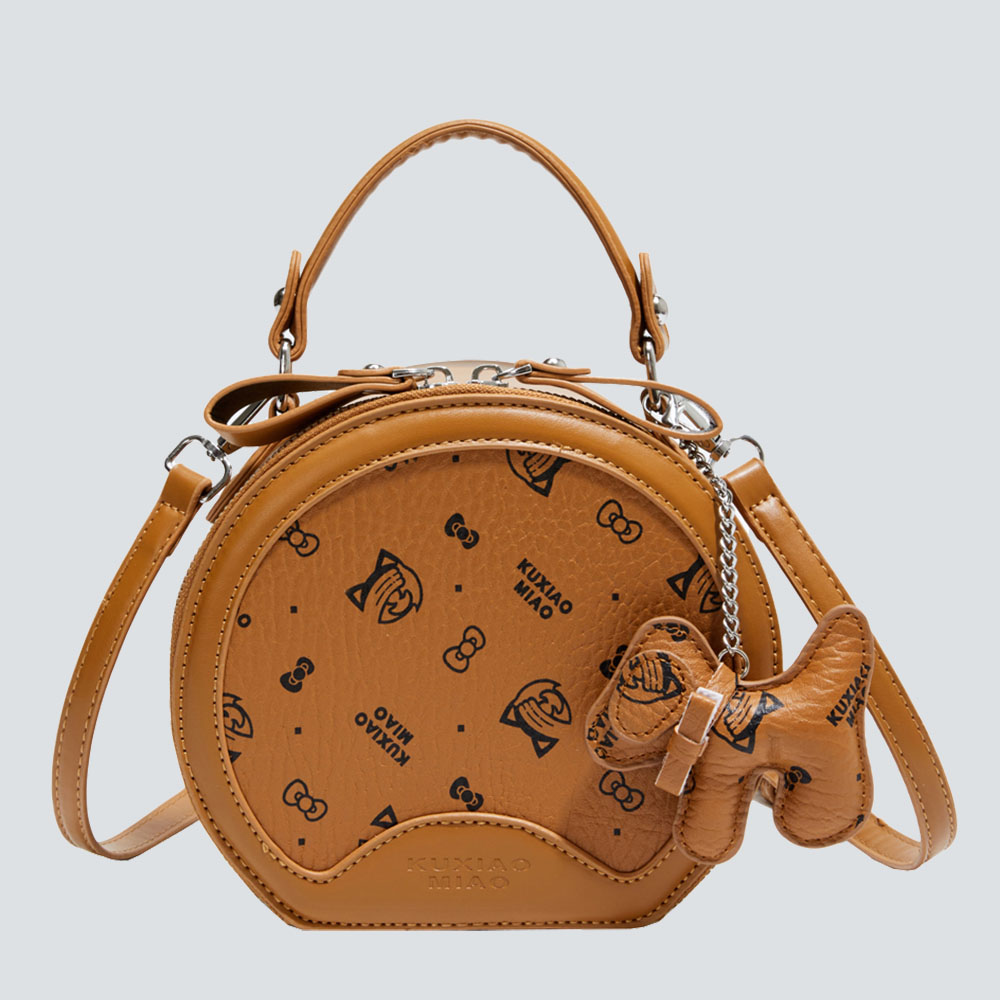 Blending playful charm with refined design, this monogram round crossbody reimagines everyday accessories through thoughtful detail. Crafted from smooth, durable material emblazoned with a distinctive signature pattern, it balances whimsy with understated luxury—enhanced by subtle hardware accents and a dainty decorative bow (on select hues).Its compact circular silhouette holds essentials (cards, lip balm, phone) while maintaining a lightweight feel, and the convertible strap lets you style it as a top-handle clutch or hands-free crossbody. Available in versatile neutral and soft pastel tones, it adds a touch of polished personality to casual outings, brunch dates, or evening errands—effortlessly chic, inherently versatile, and designed to turn quiet moments into stylish ones.