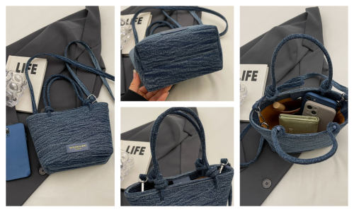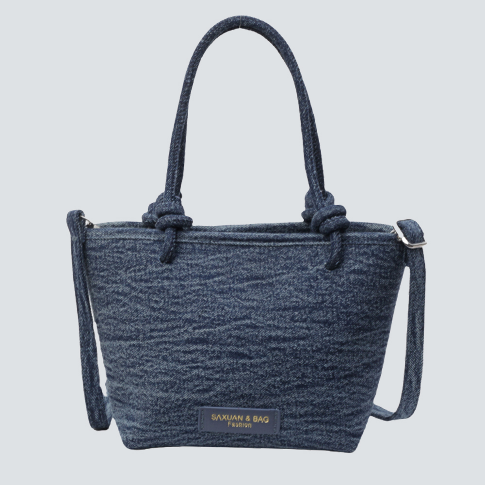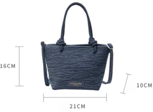 A blend of textured denim fabric and playful knotted handles—this bag balances laid-back casual charm with subtle refinement, perfect for elevating everyday looks.#5592