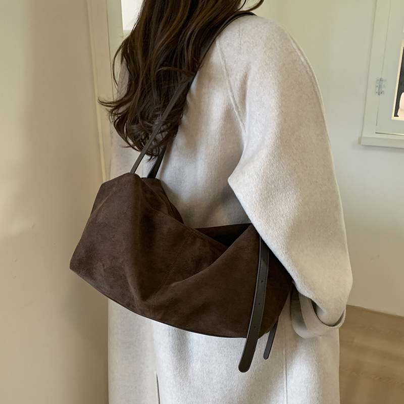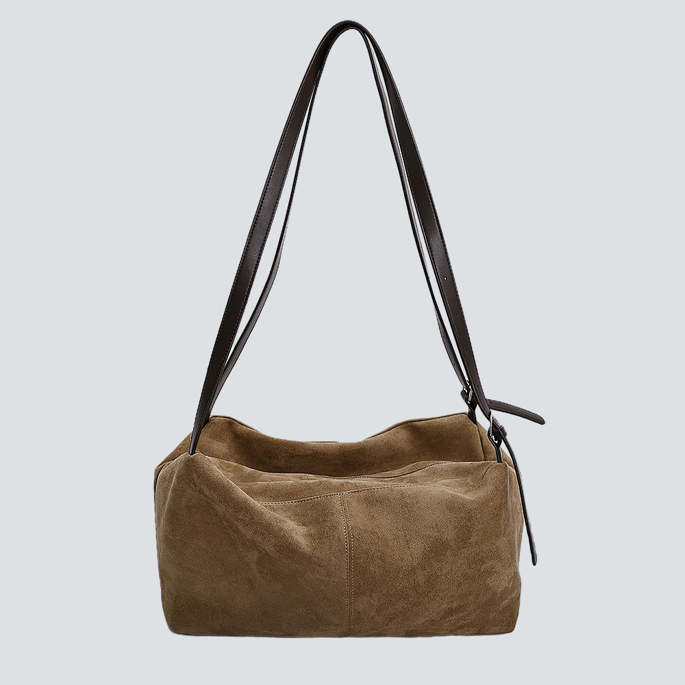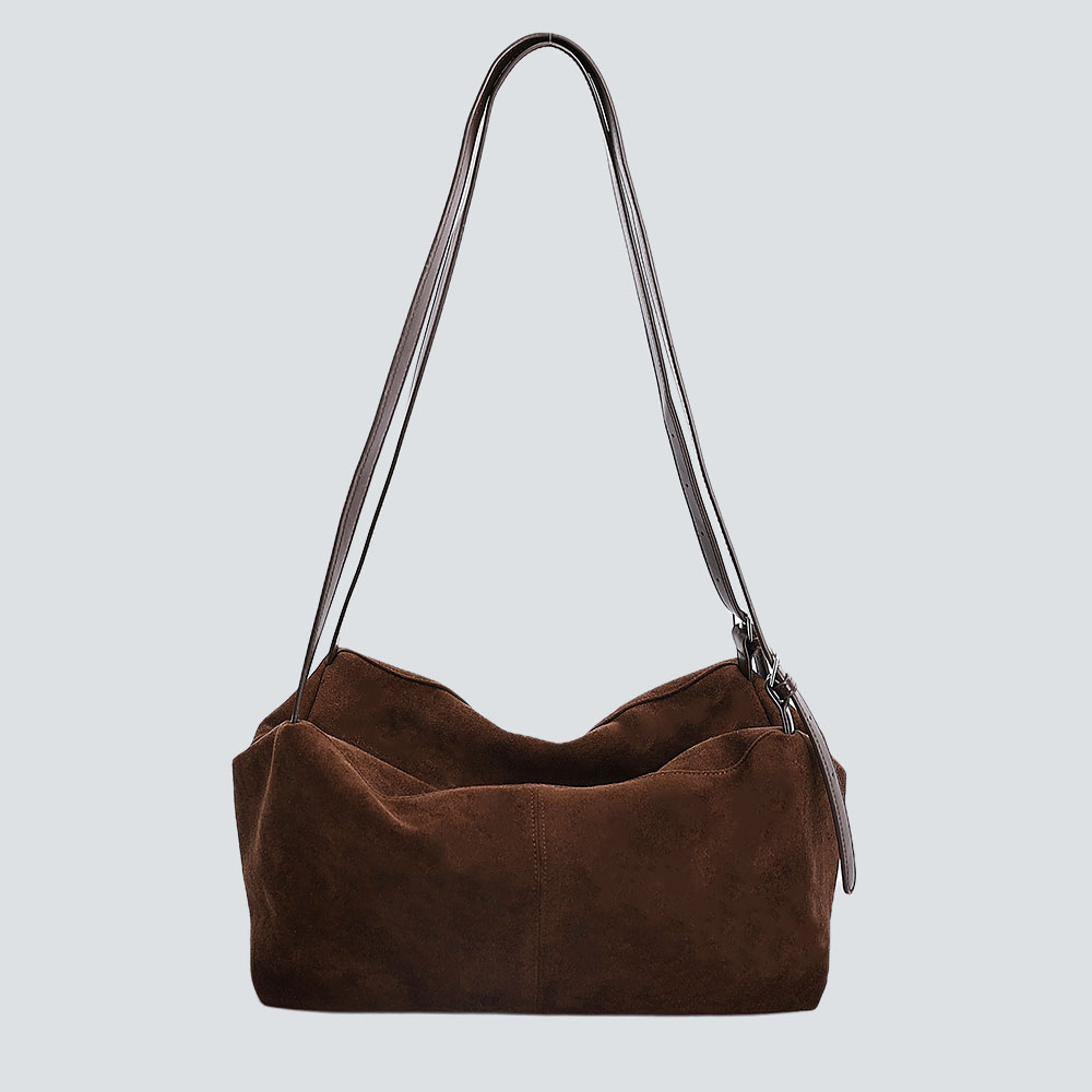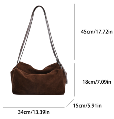 Crafted for the style enthusiast who values softness and scale, this hobo tote redefines relaxed luxury through texture contrast and intentional volume. Made from velvety suede (rich earthy hues) paired with smooth leather accents, its oversized slouchy silhouette balances laid-back ease with polished refinement—ideal for commutes, weekend outings, or everyday carry.The generously sized interior holds essentials (laptop, wallet, cosmetics) without bulk, while the wide leather-accented straps ensure comfortable all-day wear. Designed to age gracefully (developing a soft patina over time), this bag complements tailored blazers, casual knits, or denim alike: it’s a timeless staple that infuses every ensemble with tactile elegance and understated opulence.