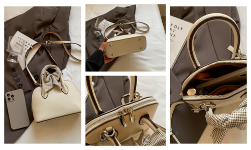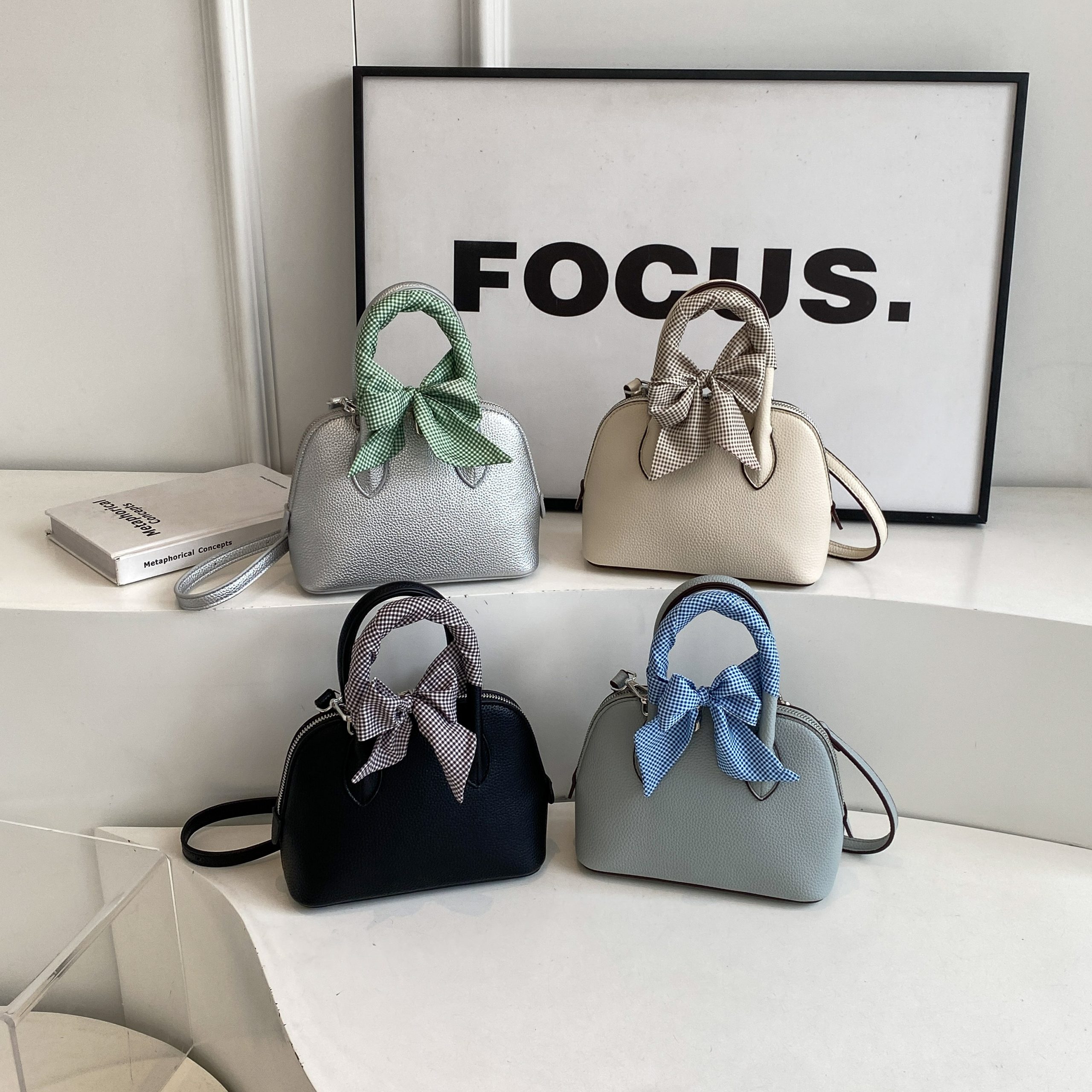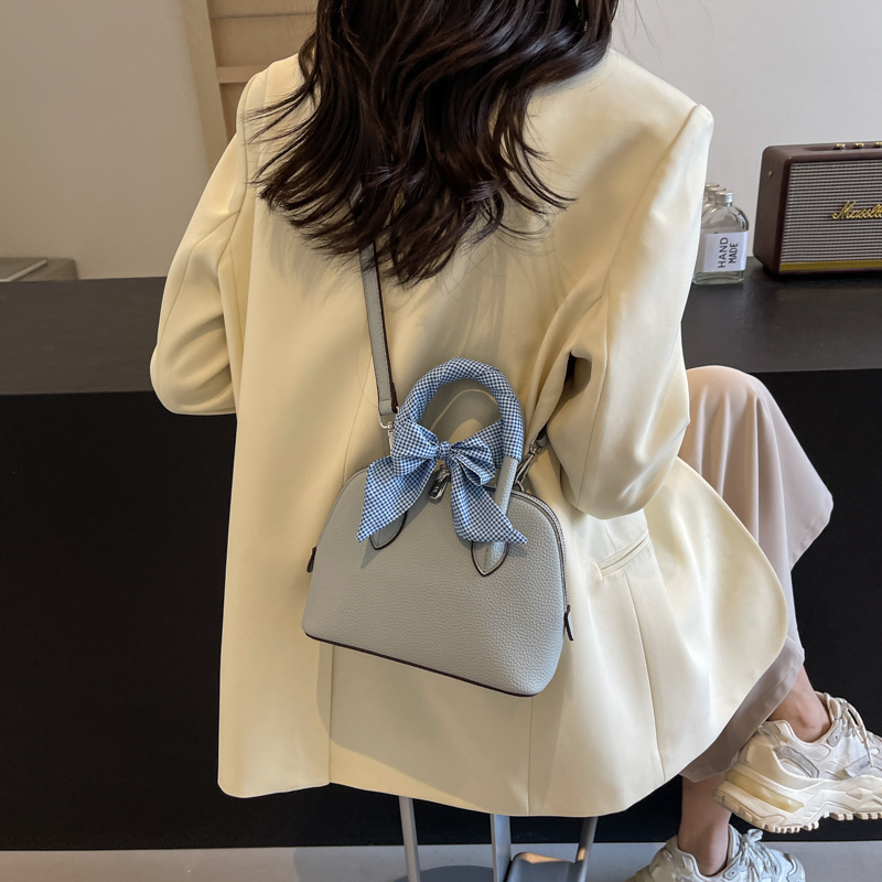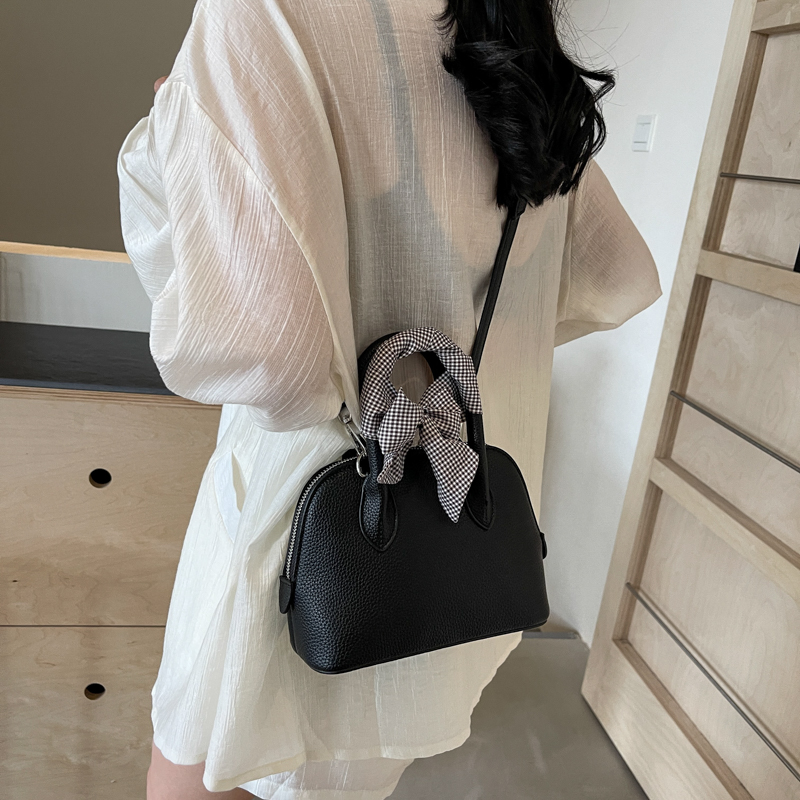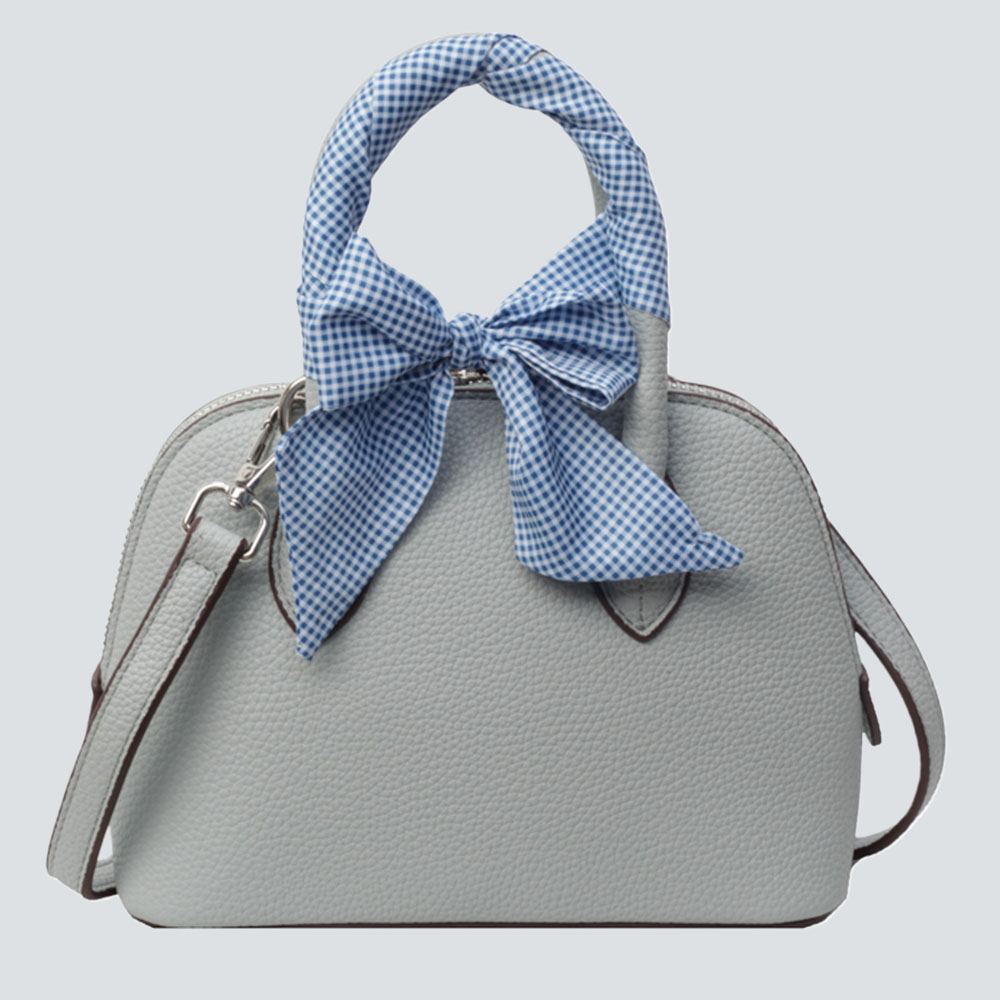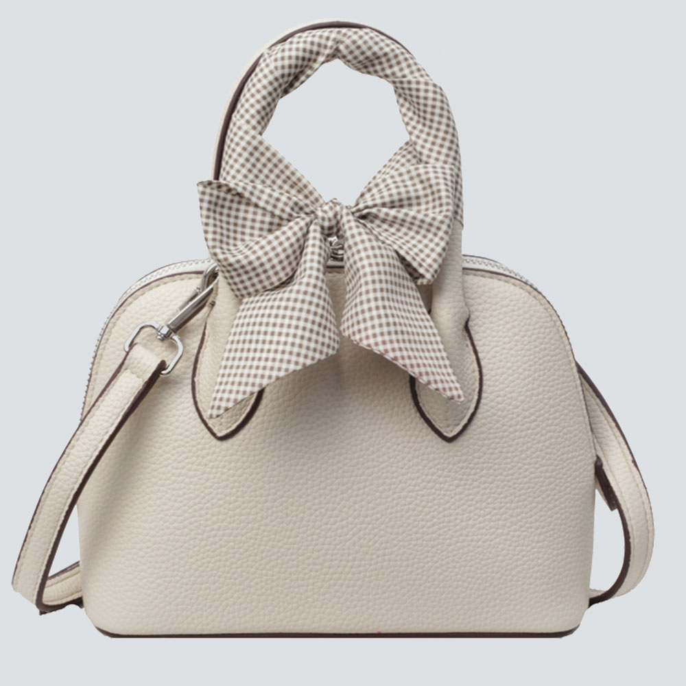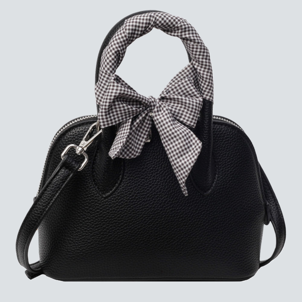 This exquisitely designed dome handbag redefines understated luxury. The smooth, grain-textured leather exterior exudes refined tactile appeal, while the detachable bowknot scarf (in classic check patterns) adds a playful yet polished touch to the signature handle.