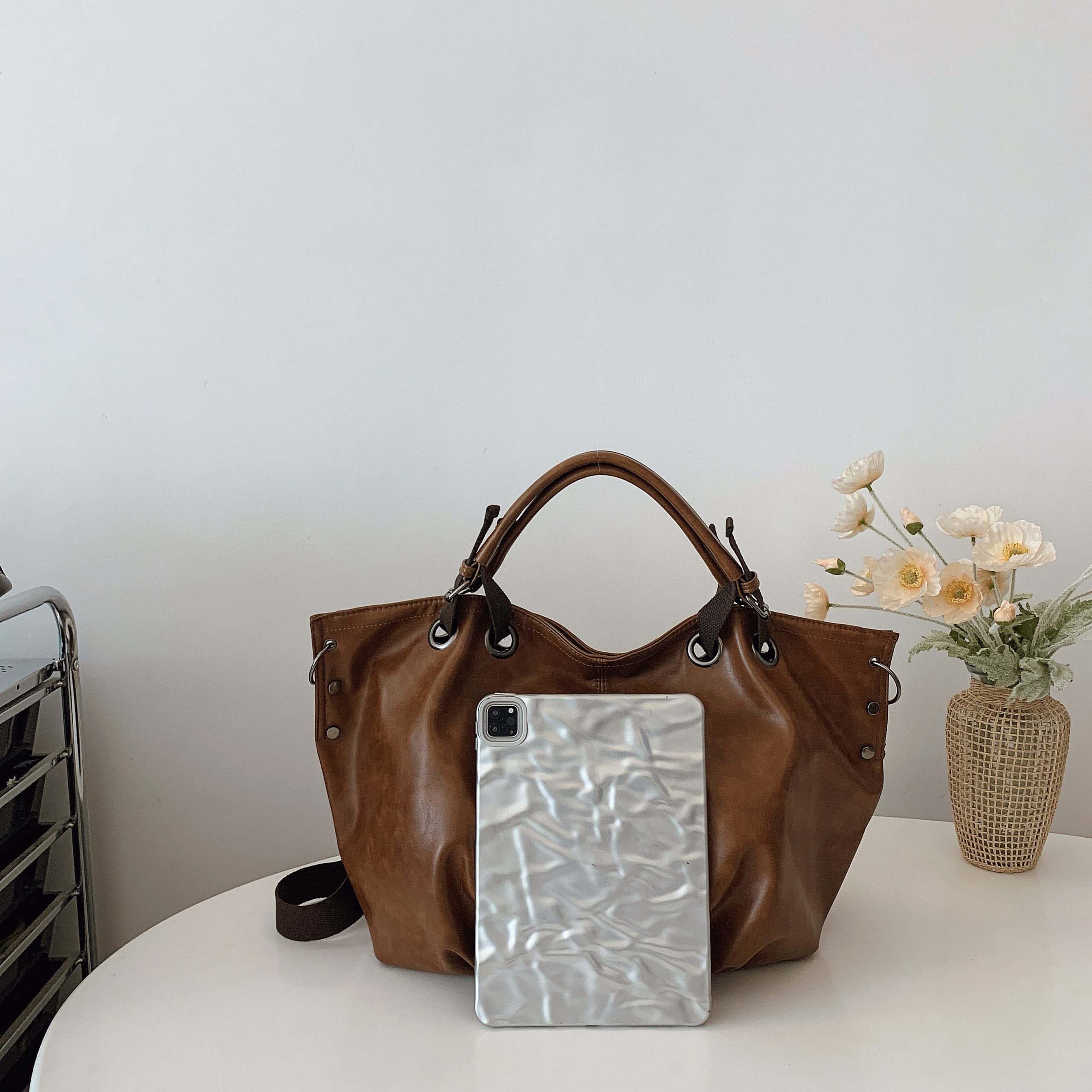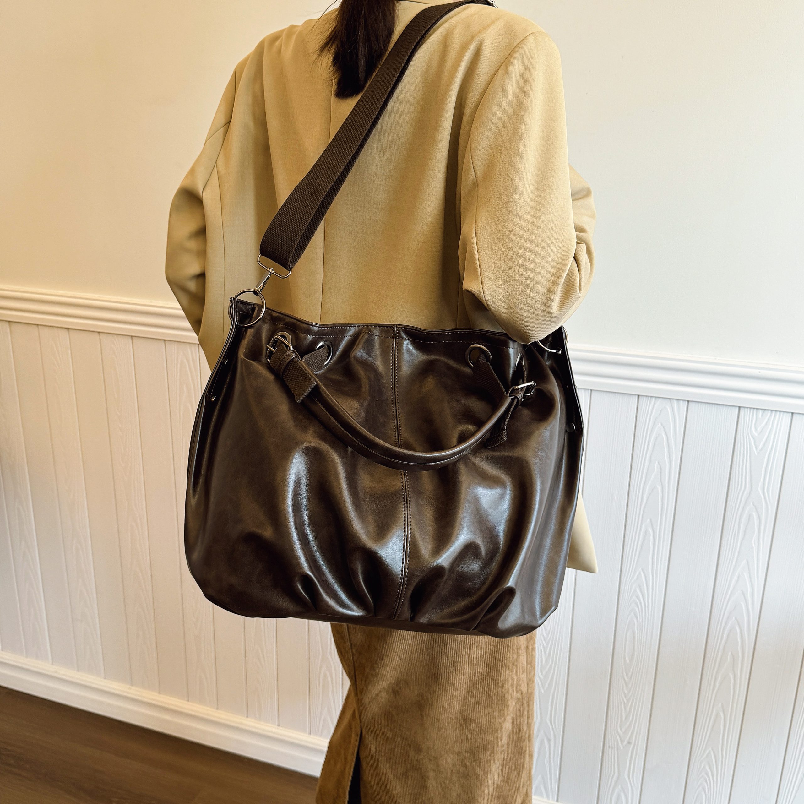 Embrace understated luxury with this slouchy leather tote: buttery-soft premium leather, oversized silhouette, and polished hardware for effortless elegance in daily commutes or weekend outings.#2139