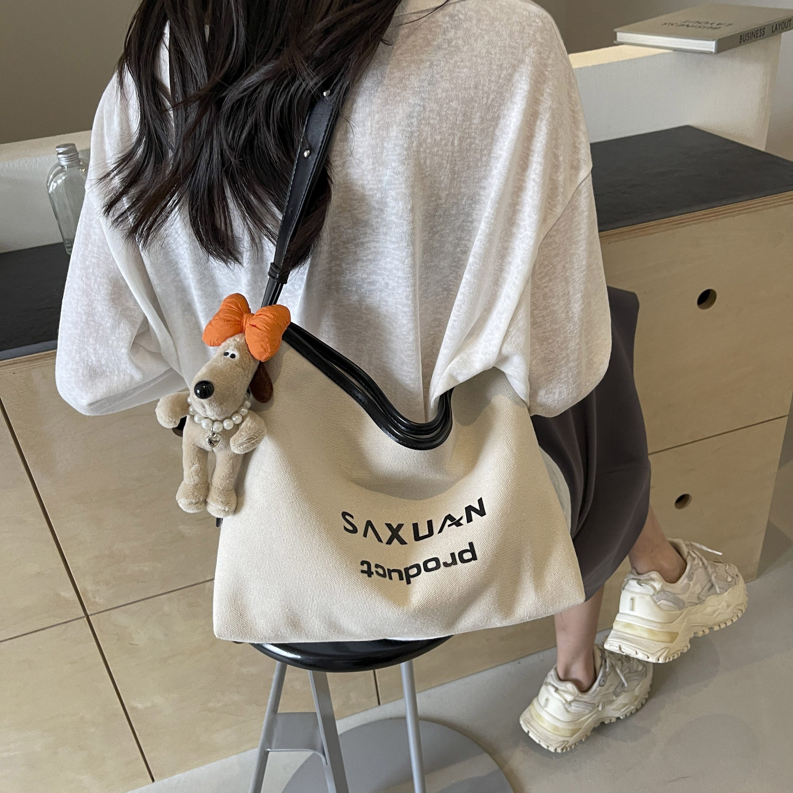 This hobo bag reimagines casual elegance through clean lines and thoughtful details. Made from durable, soft-woven canvas, its neutral tone serves as a versatile backdrop for the subtle branded lettering—striking a perfect balance between minimalism and quiet personality.