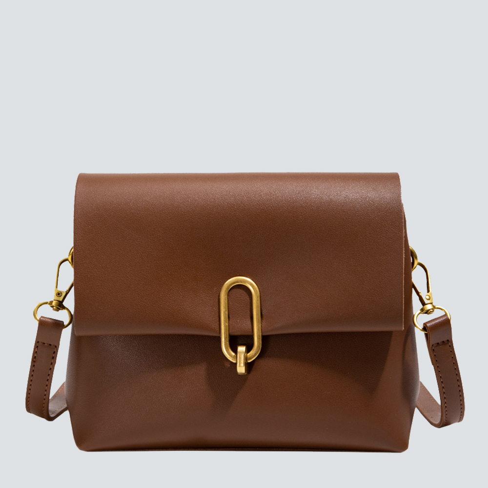 This crossbody bag embodies the “less is more” ethos through its uncluttered silhouette and intentional details: smooth, supple leather lends a luxe tactile finish, while the polished gold link closure adds a subtle luminous accent—elevating the design without excess. Its structured shape balances sleekness with practicality, offering a compact yet functional interior for daily essentials (phone, cardholder, keys) that stays streamlined. The adjustable leather strap ensures customized comfort, transitioning seamlessly from casual daytime looks to polished evening ensembles. Available in timeless neutral tones, this bag is a staple of quiet sophistication: a piece that merges minimalist design with enduring quality, perfect for curating looks that feel both intentional and effortlessly refined.