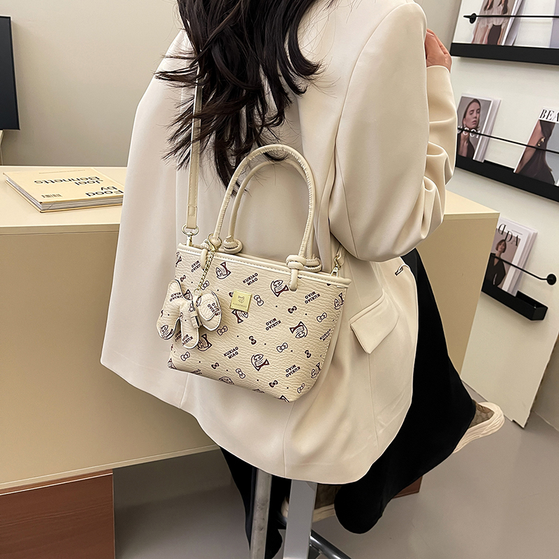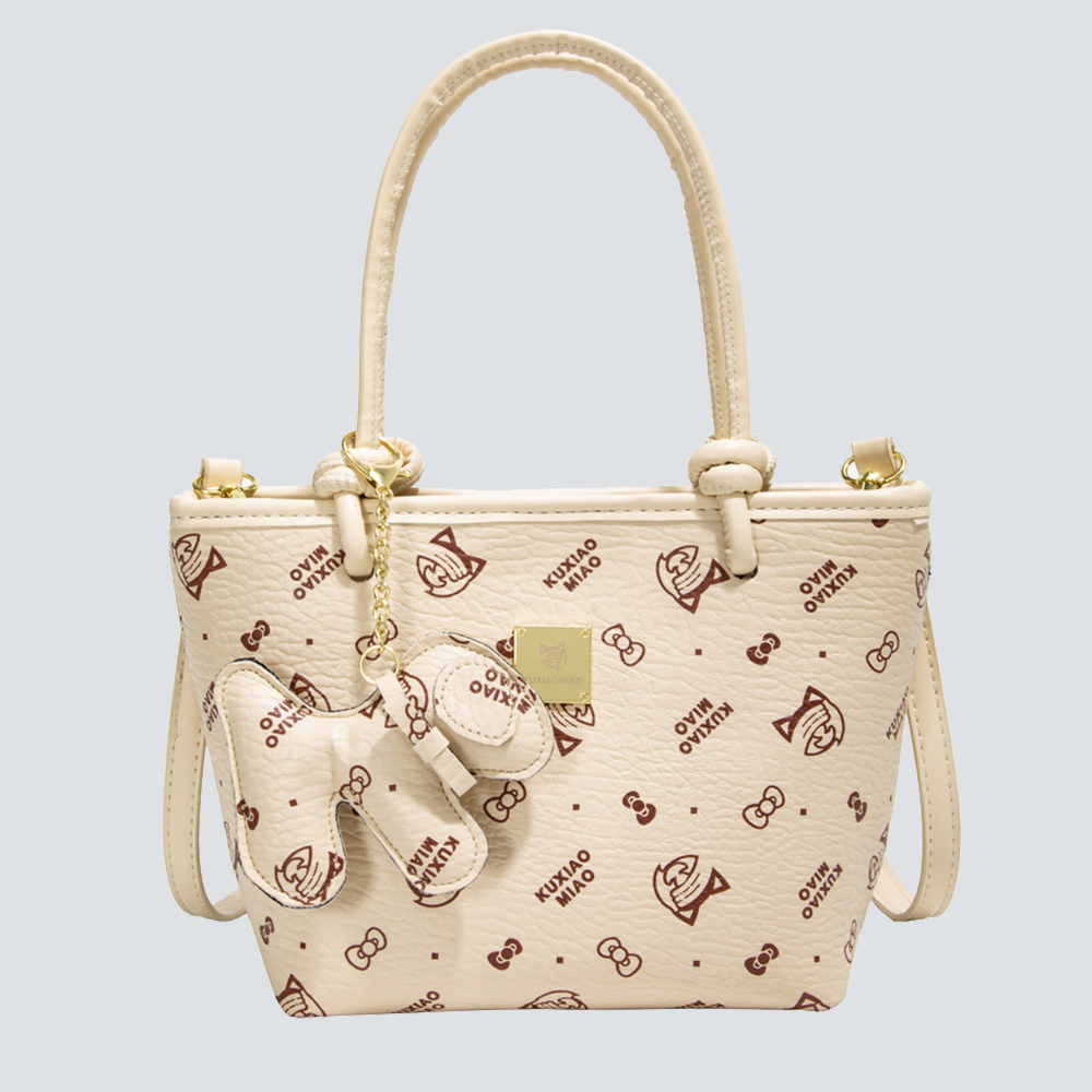 Crafted from premium embossed leather, this bucket bag embodies understated luxury through its iconic monogram motif and refined silhouette. The delicate bow detail adds a playful, feminine touch, while the polished hardware lends a luminous, sophisticated finish. Its compact yet spacious interior holds essentials with ease, and the adjustable strap offers versatile carry—handheld for polished outings, crossbody for casual convenience. The soft tonal palette exudes versatile appeal, seamlessly complementing both casual and elevated ensembles. More than an accessory, it’s a curated statement: where timeless pattern meets thoughtful charm, for the discerning wearer.