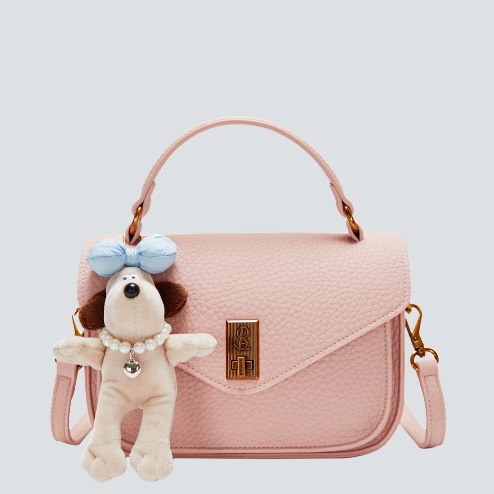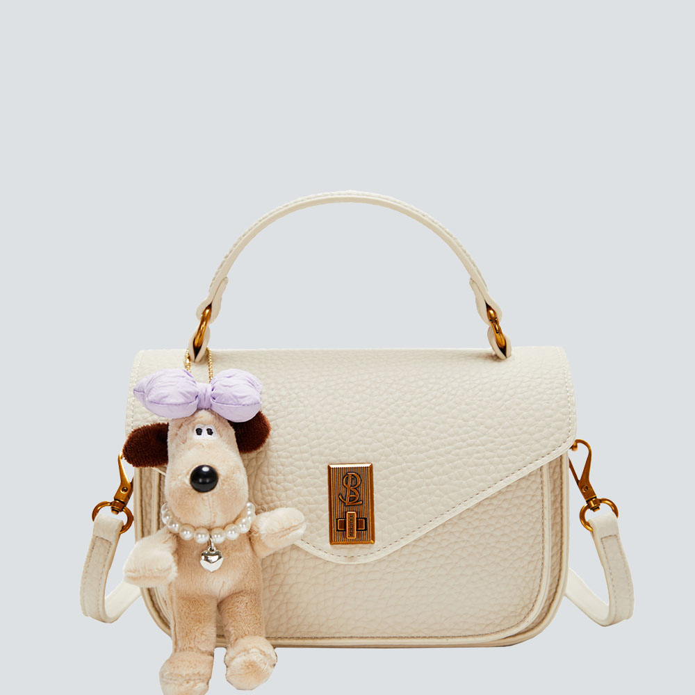 Crafted from pebbled leather, the fine grain texture exudes understated luxury. The minimalist bag silhouette softens sharp edges, with gentle lines complementing diverse figures and outfits.The plush puppy charm redefines cute sophistication—both a decorative highlight and a touch of aesthetic ingenuity; metal hardware reinforces the closure, paired with an adjustable strap for elegant handheld or casual crossbody carry. Spacious interior fits daily small essentials.Soft hues echo the leather texture. From commutes to dates, it’s both a practical carrier for daily needs and a luxury statement that elevates styling sophistication.