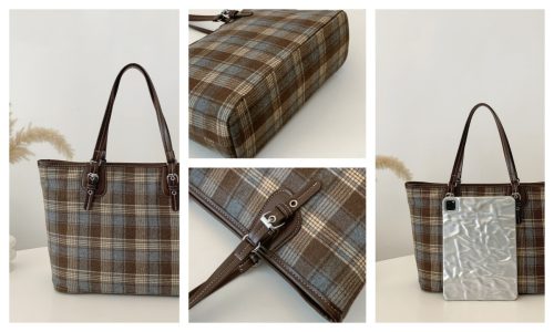 Crafted from premium plaid fabric, this tote bag embodies understated retro-chic through its timeless pattern and structured silhouette. The smooth leather trim adds a touch of refined texture, while the adjustable top handles ensure comfortable carrying for daily use. Its spacious interior accommodates essentials (from laptops to personal items) with ease, making it ideal for workdays or weekend outings. The playful bunny charm infuses a gentle, whimsical touch into its polished design—softening sophistication with delightful character. The muted plaid palette exudes versatile appeal, seamlessly complementing both casual and polished ensembles. More than an accessory, it’s a curated statement: where retro pattern meets thoughtful whimsy, for the discerning wearer.