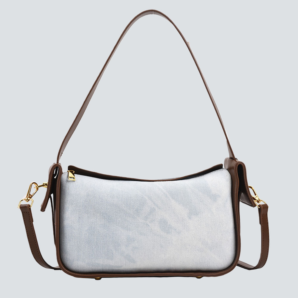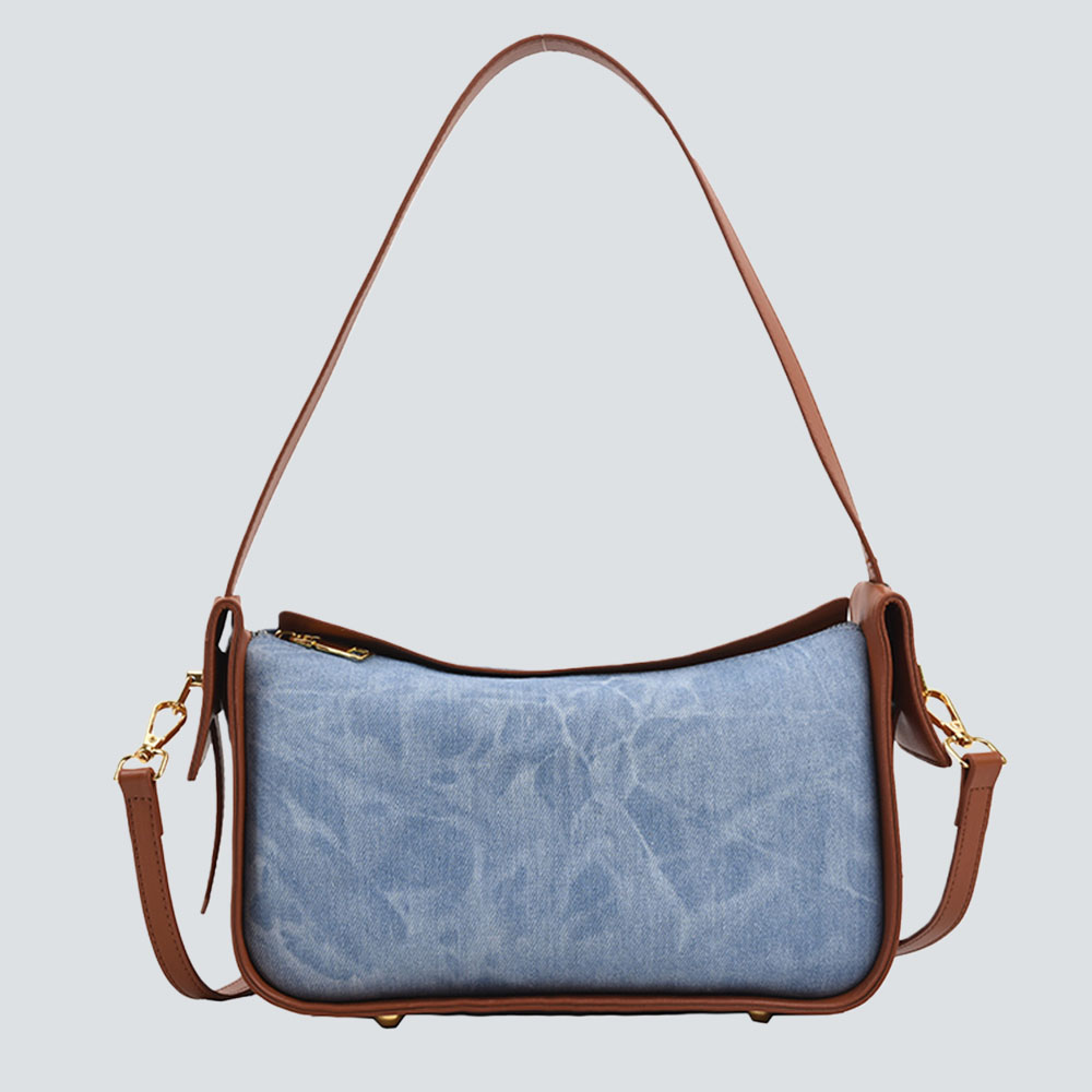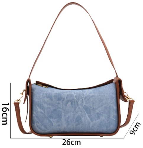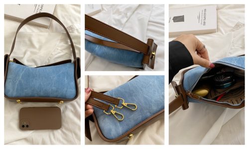 Retro Denim & Leather Shoulder Bag – Women’s Y2K Style Crossbody Bag