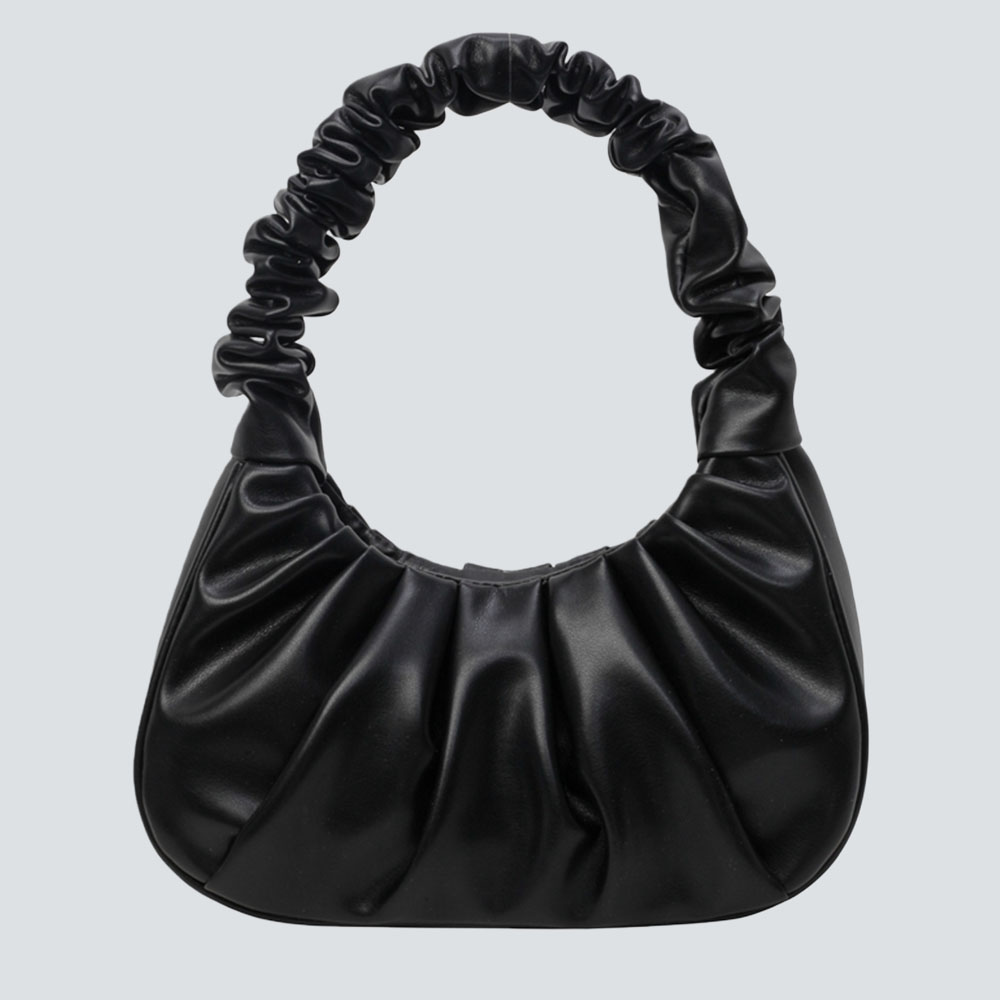 A sleek blend of gathered leather texture and ruched top handles, finished with a soft, sculpted silhouette. This mini bag balances playful elegance with compact functionality, ideal for elevating daily or evening looks.#3605