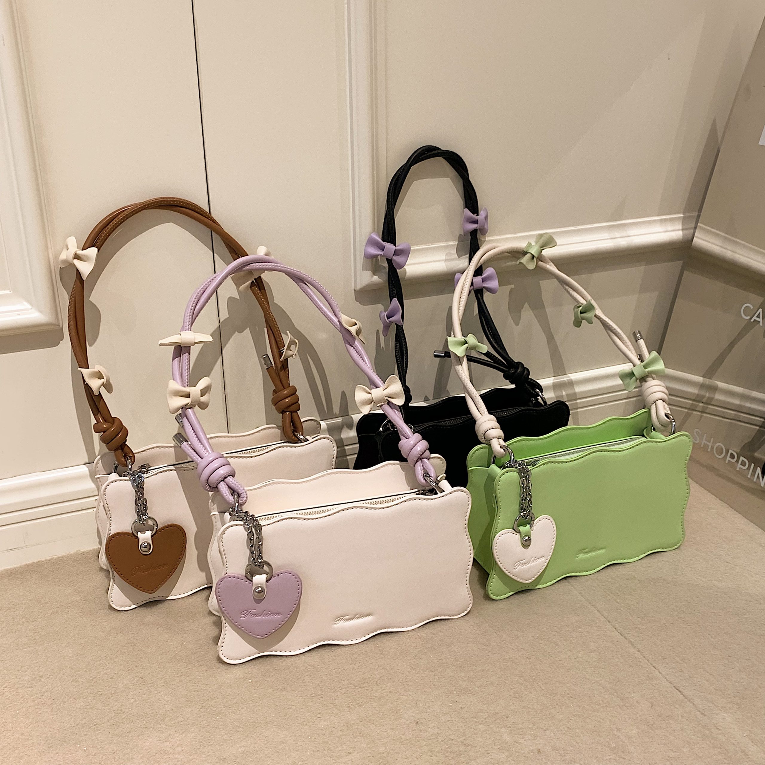 Crafted for the style enthusiast who loves subtle whimsy, this mini bag redefines feminine luxury through thoughtful design. Made from smooth, high-quality leather (in soft tonal hues), its unique scalloped-edge silhouette balances playful charm with polished elegance—enhanced by a braided shoulder strap and delicate bow accents that add layers of tactile personality.The compact interior holds daily essentials (phone, cardholder, lipstick) without bulk, while the adjustable strap adapts seamlessly to daytime errands or evening gatherings. Designed to complement tailored blazers, flowy dresses, or casual knits alike, this bag is more than an accessory: it’s a timeless staple that infuses every ensemble with understated whimsy and refined charm.