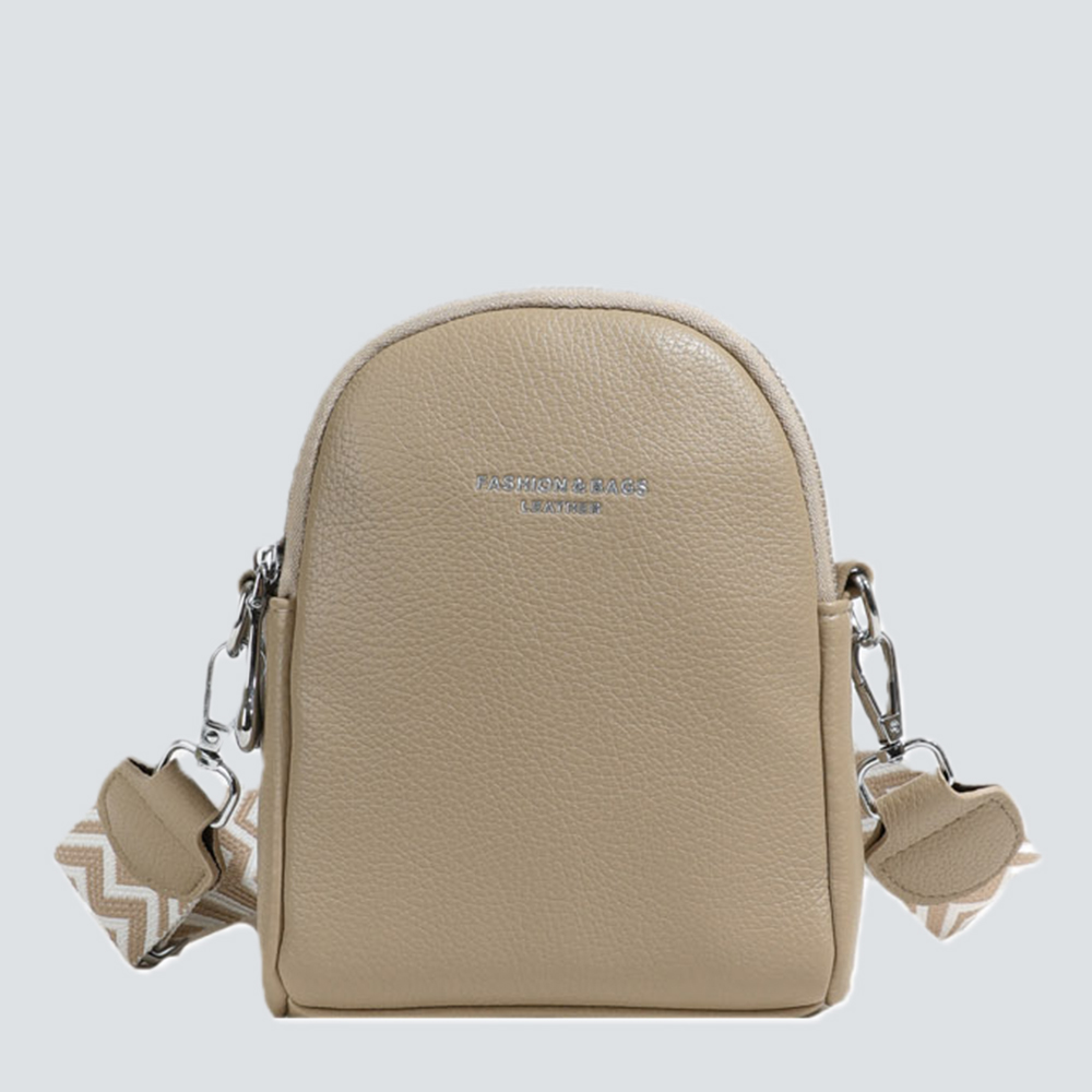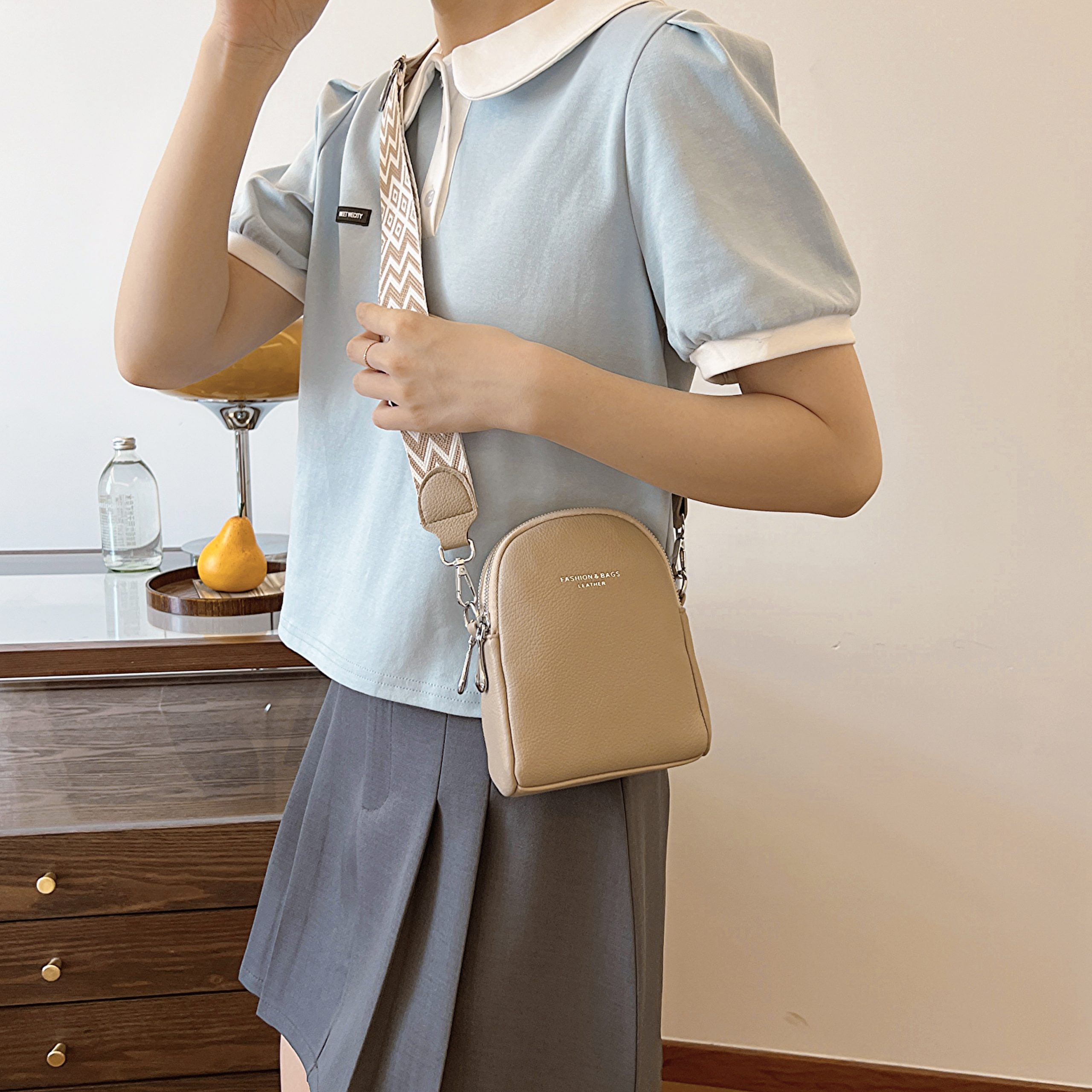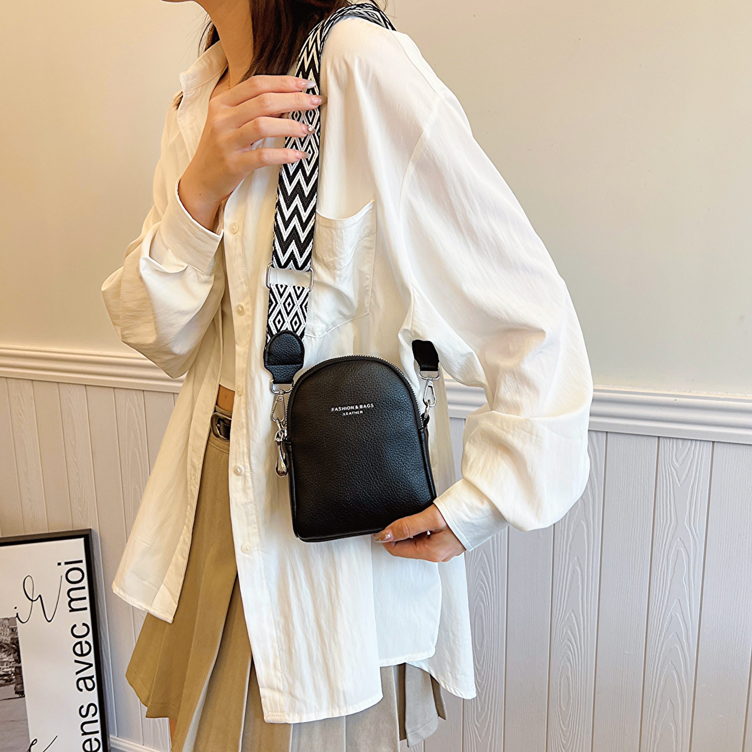 Designed for modern versatility, its compact interior holds essentials (phone, cards, lip balm) with ease, while the adjustable strap adapts seamlessly to crossbody or shoulder styling (ideal for commutes, errands, or casual gatherings). Every detail—from the subtle embossed branding to the smooth hardware—is curated to feel intentional: the leather’s texture elevates casual ensembles, while the strap’s pattern adds a focal point without overwhelming. It’s a staple that turns everyday accessories into subtly distinctive style statements.