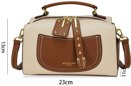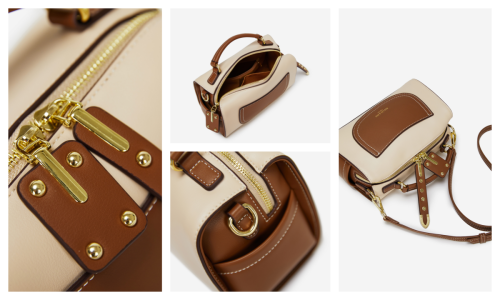 This satchel reimagines retro sophistication through intentional detail: its smooth, structured leather surface is elevated by sharp contrast stitching, while polished gold hardware (from buckles to zippers) adds a luminous, refined touch. The compact yet functional silhouette balances sleek tailoring with practicality—with a dedicated front pocket and spacious interior to organize daily essentials (phone, wallet, cosmetics) without compromising its polished shape. Equipped with a top handle and adjustable crossbody strap, it transitions seamlessly from weekday commutes to weekend outings, adapting to every moment with effortless grace. Available in monochrome and two-tone hues, this piece is a study in “timeless edge”: a staple that merges artisanal craft with retro-modern flair, perfect for curating looks that feel both intentional and inherently distinctive.