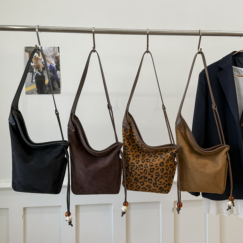 Elevate casual-chic style with this plush hobo bag: soft suede/leopard fabric, slouchy silhouette, and delicate charm accents—blending tactile luxury with effortless versatility.#1103