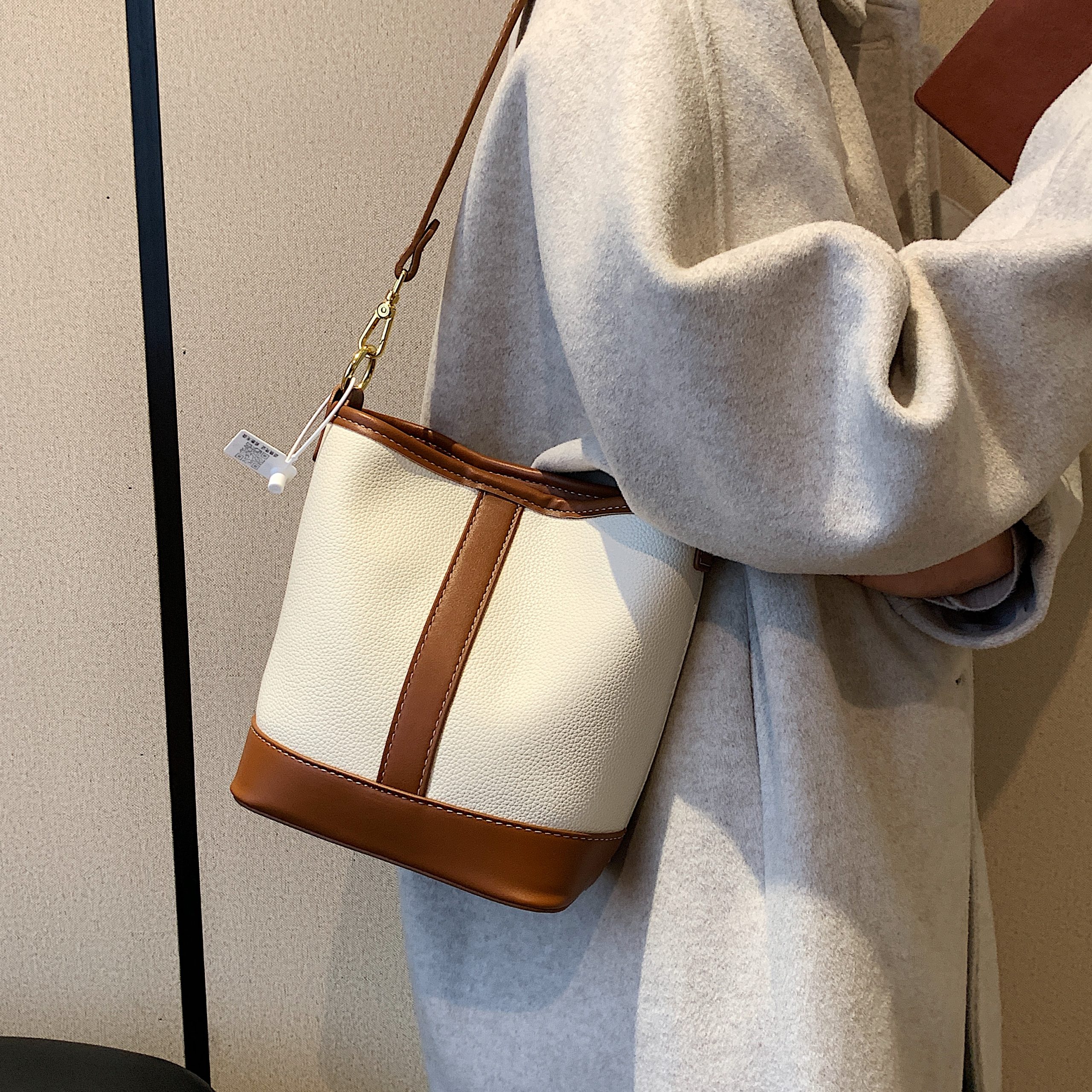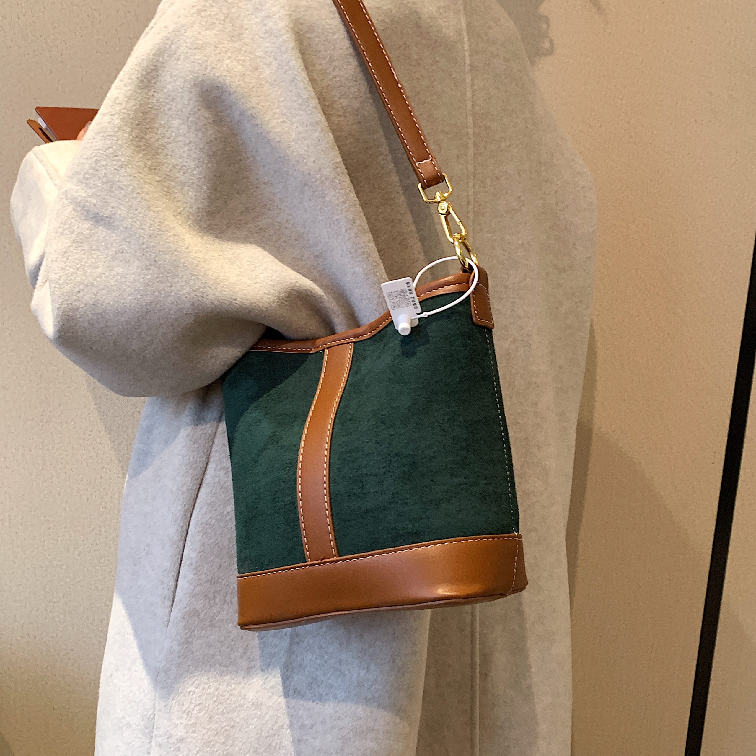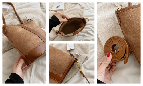 A refined blend of soft suede and smooth leather, this bucket bag balances tactile texture with sleek minimalism—ideal for elevating everyday and casual ensembles.#5566