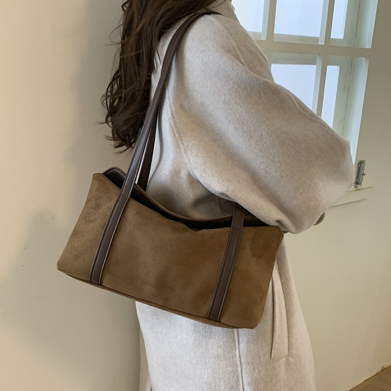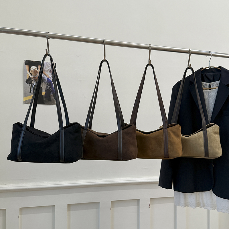 Blending the soft texture of suede with the crisp touch of leather, this bag crafts a retro vibe that’s relaxed yet intentional. The wide strap supports both underarm and shoulder styling, while the slouchy silhouette carries a lazy charm—perfect for commutes, coffee runs, or weekend strolls as a “light French” textured staple. Available in multiple hues, each piece is a niche aesthetic statement that avoids common styles.#6081
