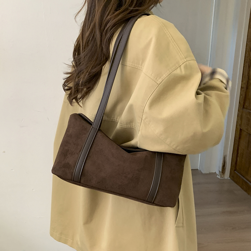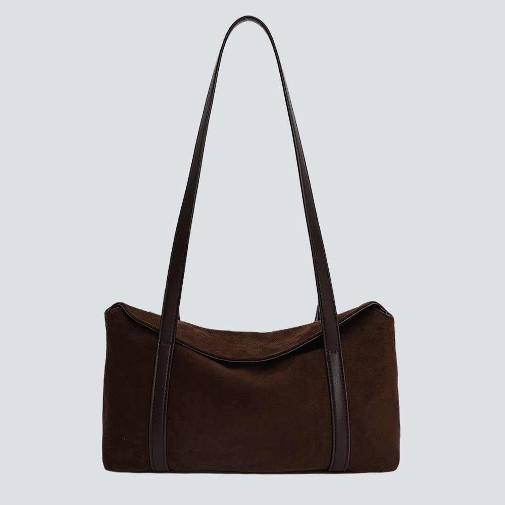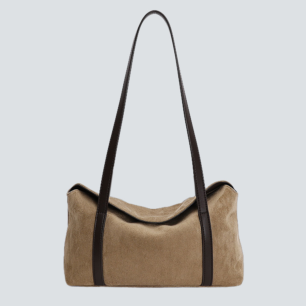 Amidst the fast-paced style iterations, “relaxed elegance” has become a rare aesthetic core—and this underarm bag is designed with “effortless sophistication” at its heart.Crafted primarily from delicate suede, the bag feels as soft as a cloud against the skin; the sides and strap are paneled with structured leather, infusing crispness into the softness so laziness doesn’t turn into slovenliness. The slouchy-yet-sturdy silhouette retains the casual shape of an underarm bag while securely holding daily essentials like phones, compacts, and keys, balancing practicality and beauty.Free of excessive embellishments, the bag uses material paneling as the visual focus. Its retro hues (deep black/brown/warm khaki) complement autumn-winter knits and spring-summer blouses alike, letting you carry a “light retro” rhythm. Whether paired with a blazer for work-ready polish or a dress for date-night softness, it becomes a “low-key but memorable” part of your look—after all, true texture isn’t about deliberate excess, but about comfort and timelessness hidden in the details.