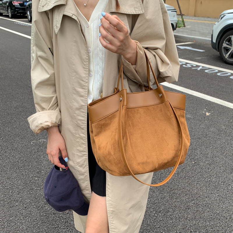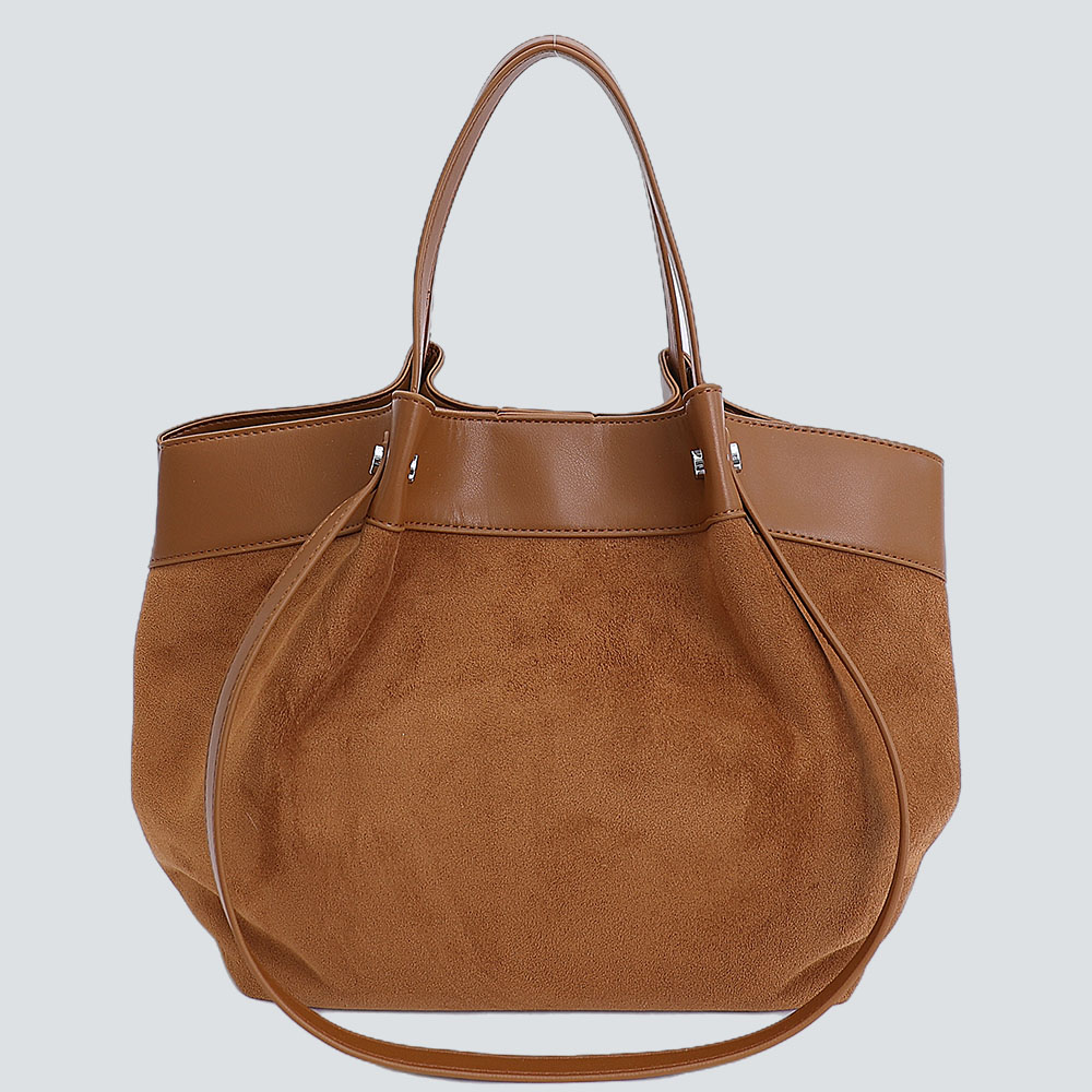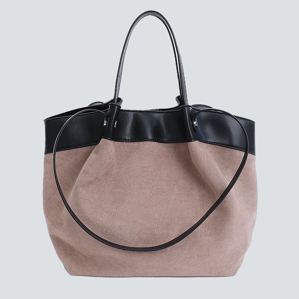 Crafted for the discerning modern wearer, this tote redefines understated luxury through texture contrast and relaxed shape. Made from velvety suede paired with smooth leather accents (in rich tonal combinations), its slouchy silhouette balances laid-back ease with polished refinement—enhanced by clean stitching and sturdy dual handles that ensure comfortable carry.The generously sized interior accommodates work essentials, weekend belongings, or daily groceries without bulk, while the lightweight construction keeps it effortless to wear. Designed to complement tailored office looks, casual knits, or denim alike, this bag is more than an accessory: it’s a timeless staple that adds a layer of sophisticated texture to every ensemble.