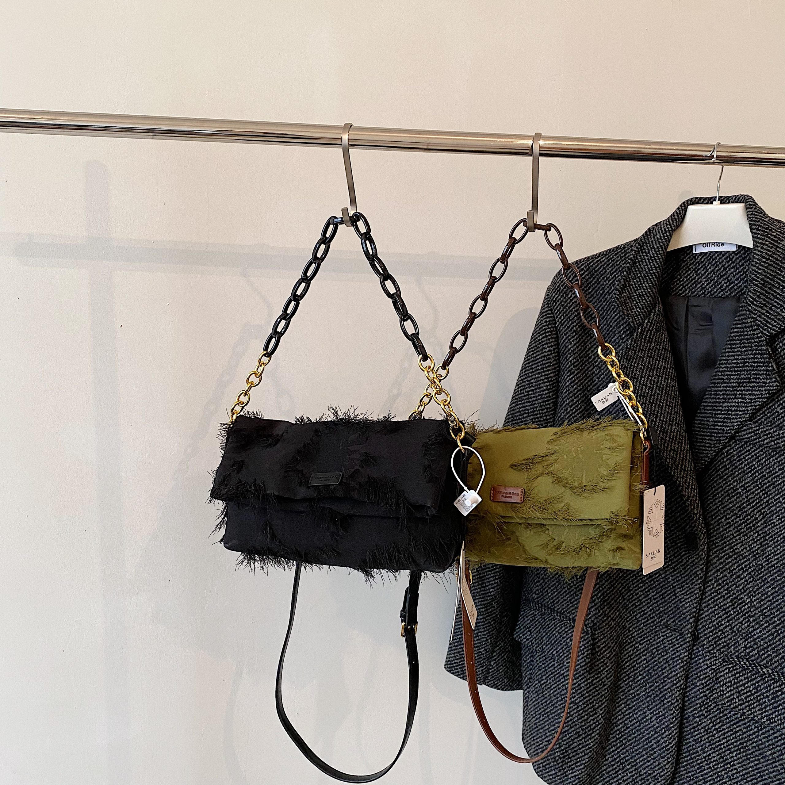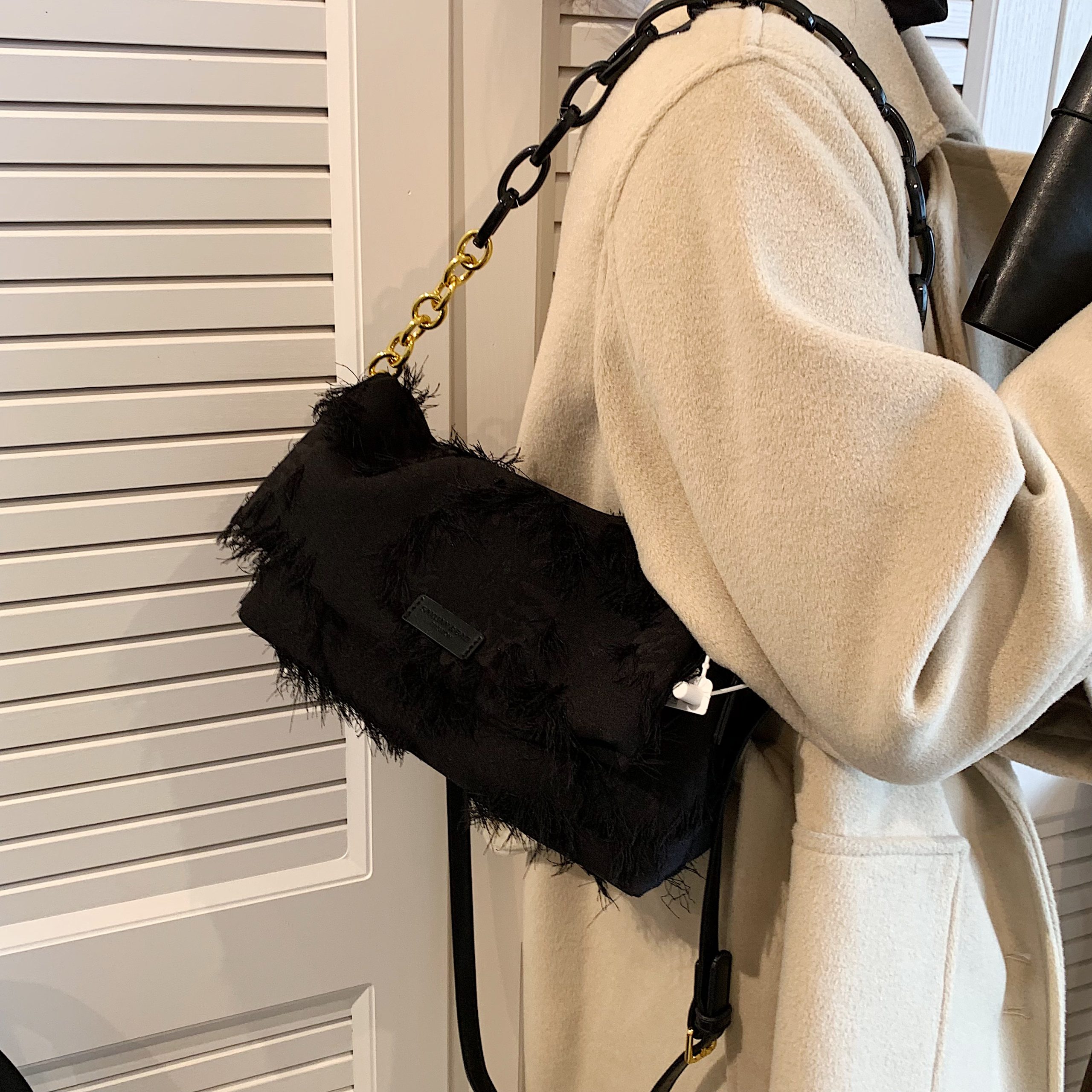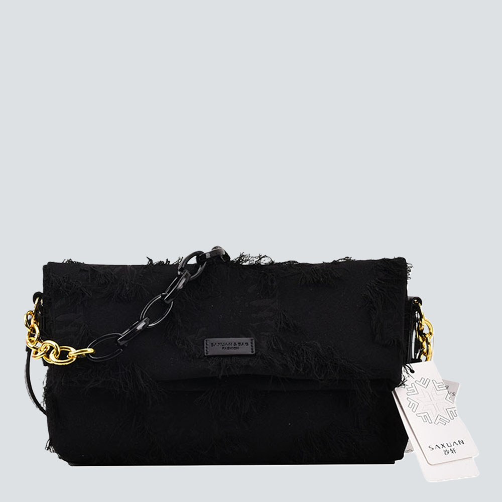 Textured fabric meets fringe details; the metal chain balances edge and elegance. Multi-carry design suits versatile occasions—a distinctive, refined staple for daily styling.#2256