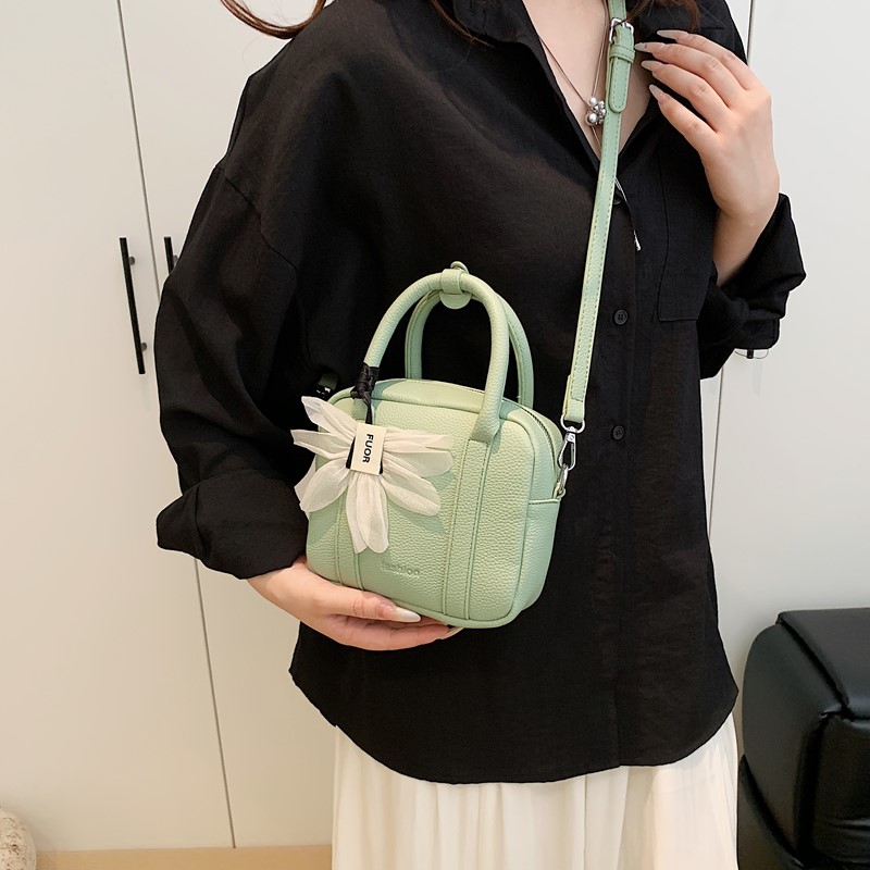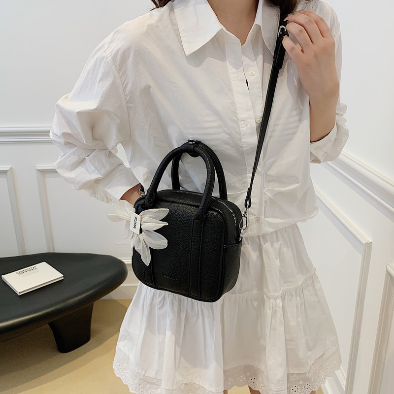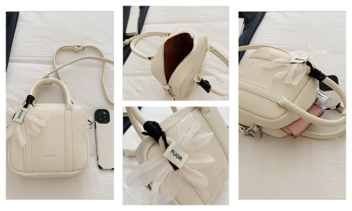 This mini top-handle bag reimagines understated luxury through its refined details: supple textured leather lends a tactile, sophisticated finish, while the sculpted compact silhouette balances practicality with polished charm. The delicate organza flower accent—soft in texture, subtle in design—adds a whimsical yet elegant touch, elevating the piece beyond basic accessories. Equipped with an adjustable crossbody strap, it transitions seamlessly from daytime errands to evening outings, with just enough space for essentials (phone, cardholder, lipstick) without compromising its sleek shape. Available in muted, versatile hues, this bag is a testament to “less is more”: a timeless staple that merges artisanal craft with modern minimalism, perfect for curating looks that feel both intentional and effortlessly stylish.