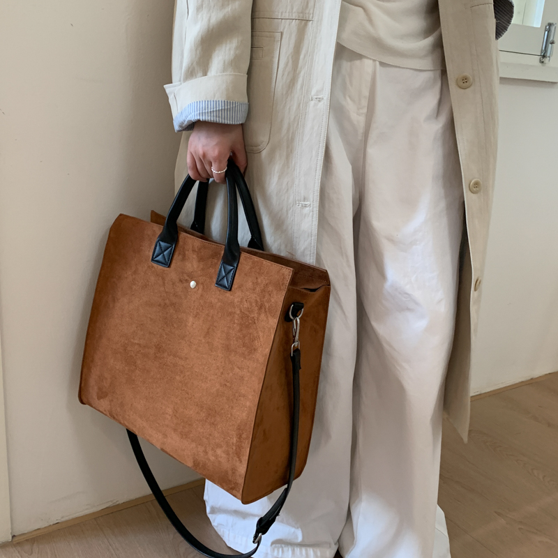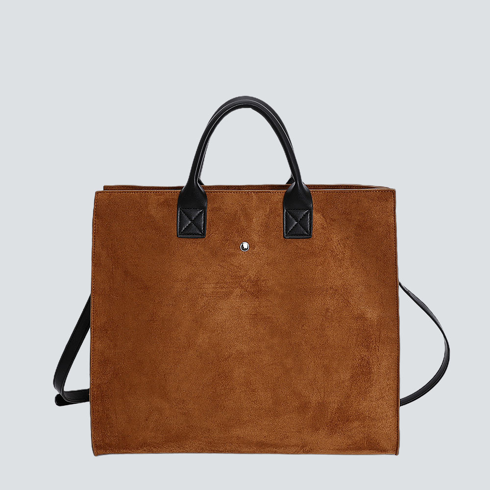Crafted for the discerning modern wearer, this tote redefines everyday luxury through texture and balance. Available in plush suede (rich tonal hues) or bold leopard fabric (warm earthy patterns), its crisp structured shape marries polished elegance with understated ease—anchored by contrast leather trim and a sleek metallic accent that adds subtle sophistication.The spacious interior accommodates work essentials, groceries, or weekend belongings without bulk, while the sturdy top handles ensure comfortable carry. Designed to transition seamlessly from office commutes to casual outings, this tote is more than a bag: it’s a tactile statement of refined style, equally suited to polished ensembles and relaxed layers.
