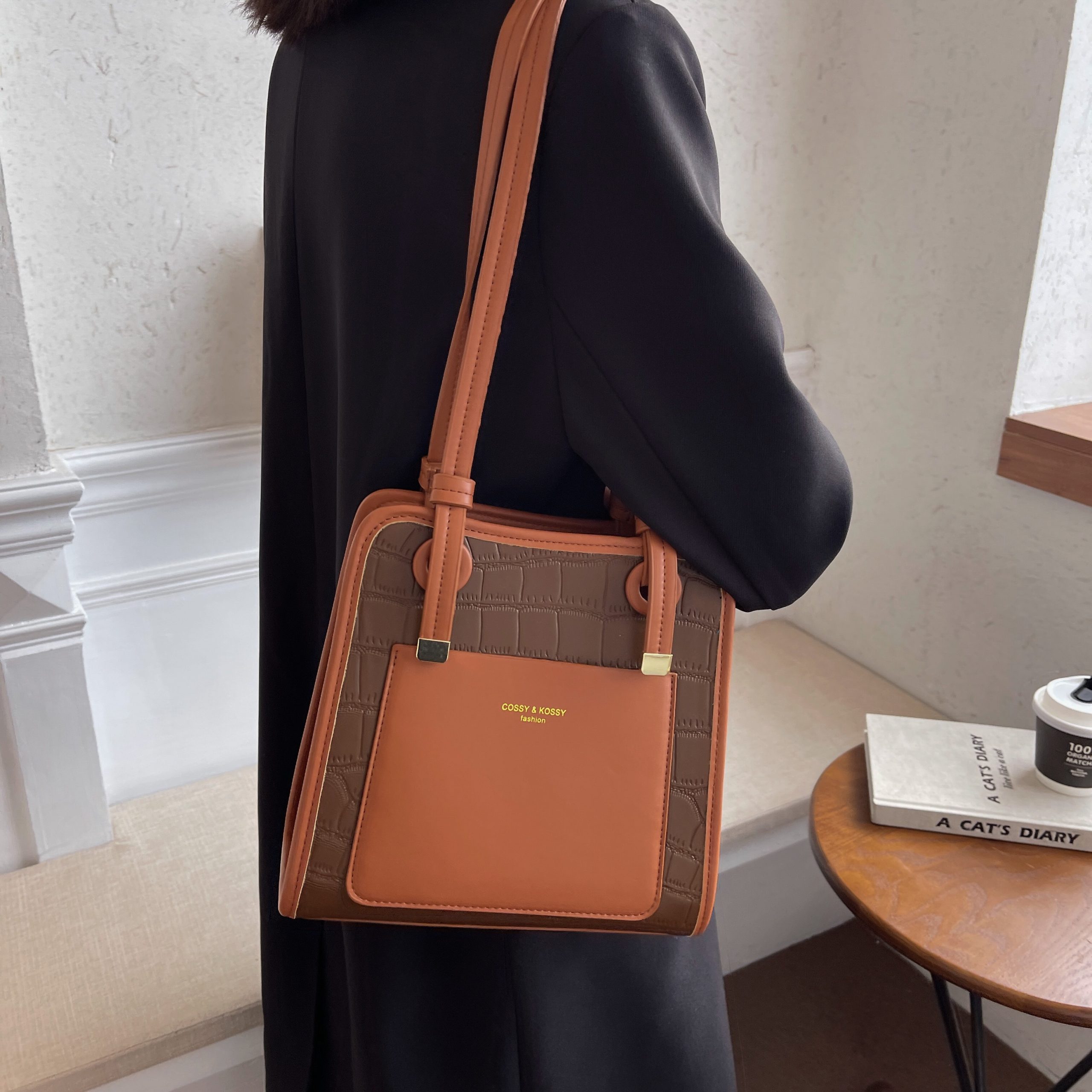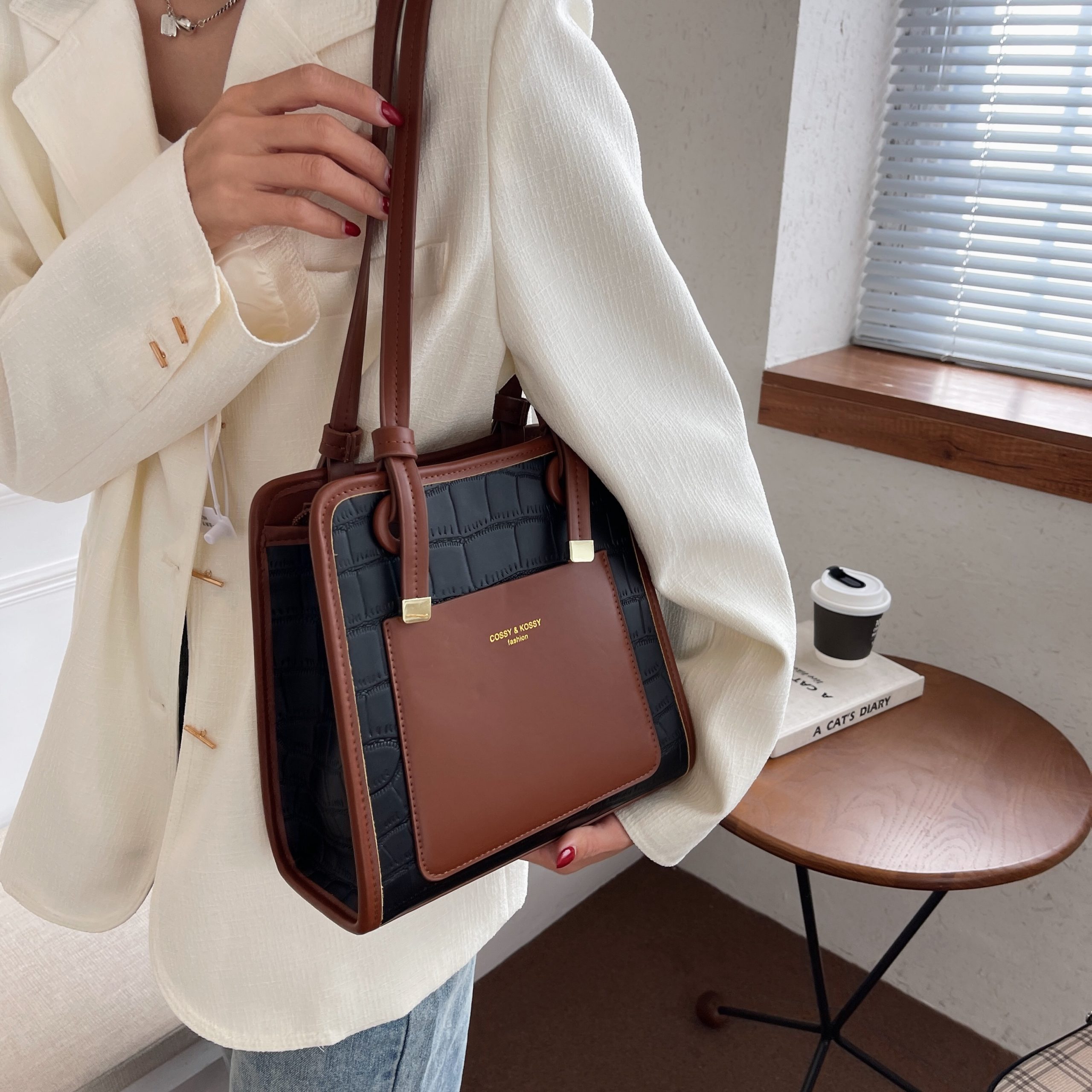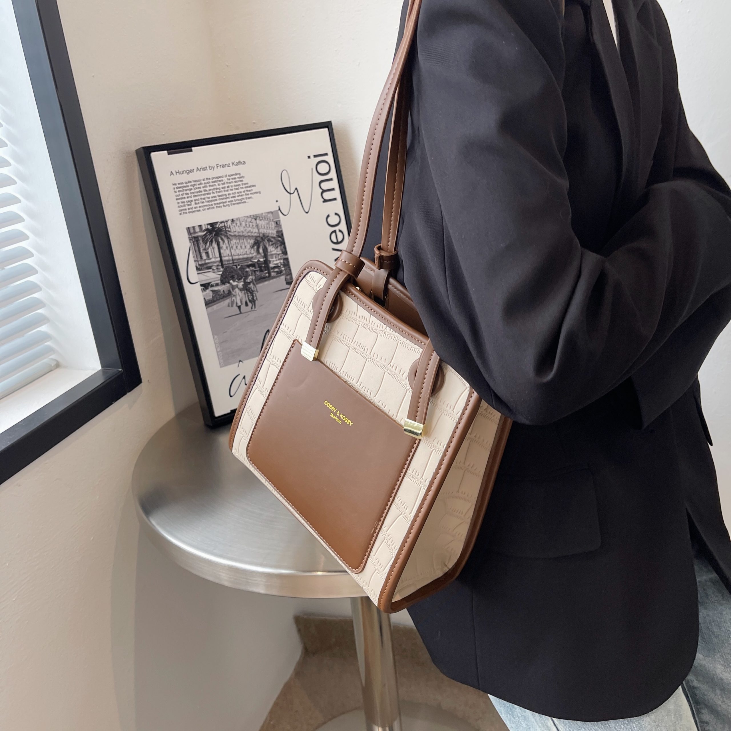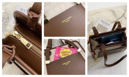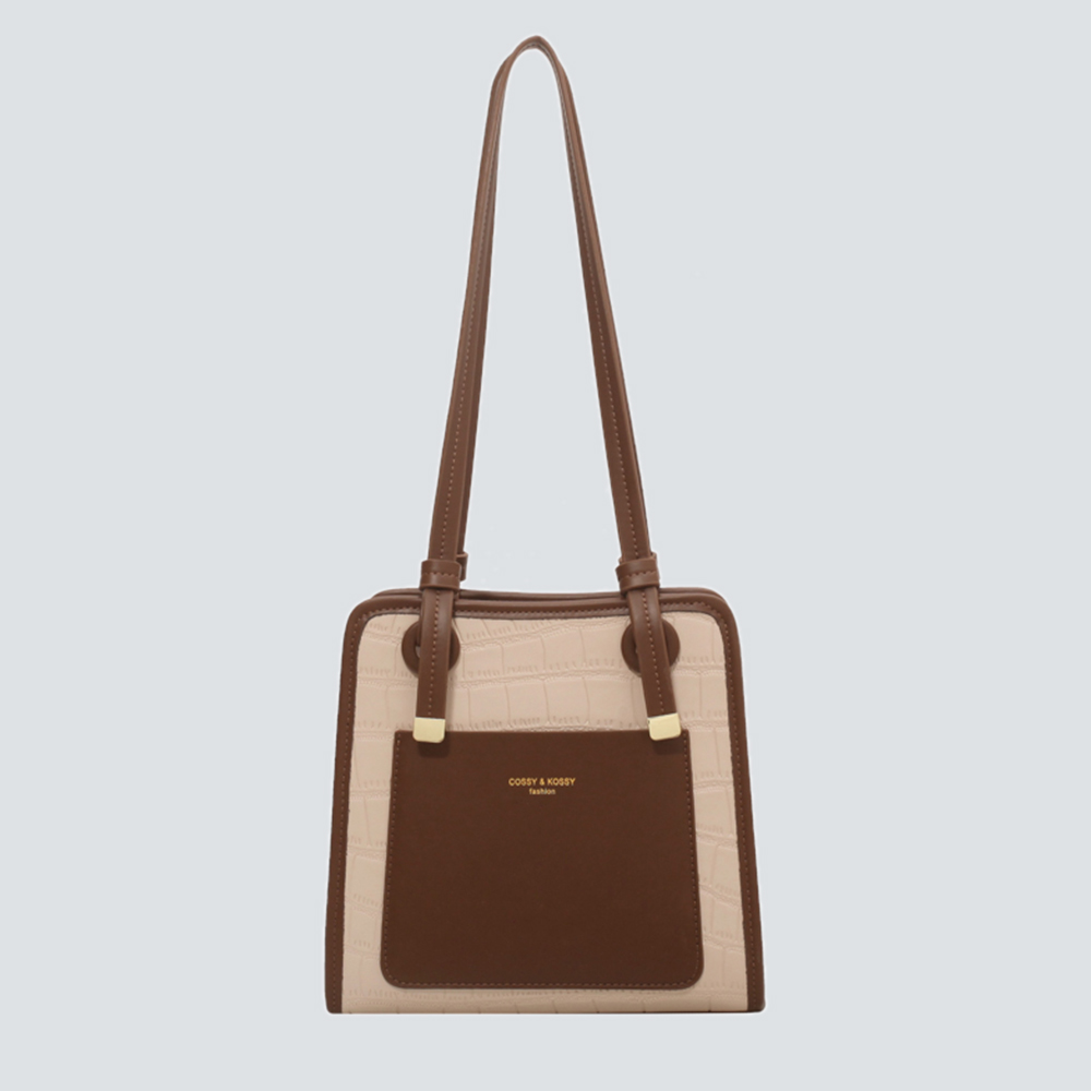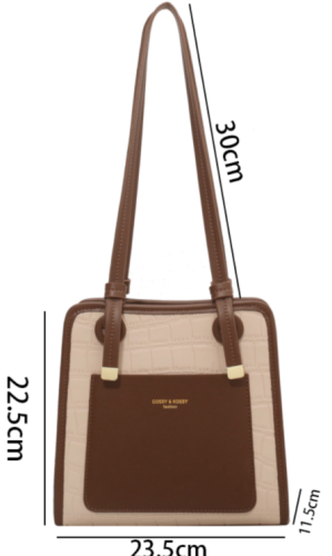 This satchel redefines refined versatility through textural contrast: its croc-embossed leather base lends a luxurious, tactile depth, while the smooth two-tone paneling adds a sleek, modern dimension. Polished gold hardware—from the accent studs to the subtle logo plaque—elevates the design with understated luminosity, balancing bold texture with quiet sophistication. The compact yet functional silhouette offers a zippered main compartment (with a slip pocket for small essentials) and adjustable leather straps, transitioning seamlessly from handheld elegance to crossbody convenience. Available in soft neutral color combinations, this piece is a testament to “timeless modernity”: a staple that merges artisanal texture with intentional minimalism, perfect for curating looks that feel both polished and uniquely yours.