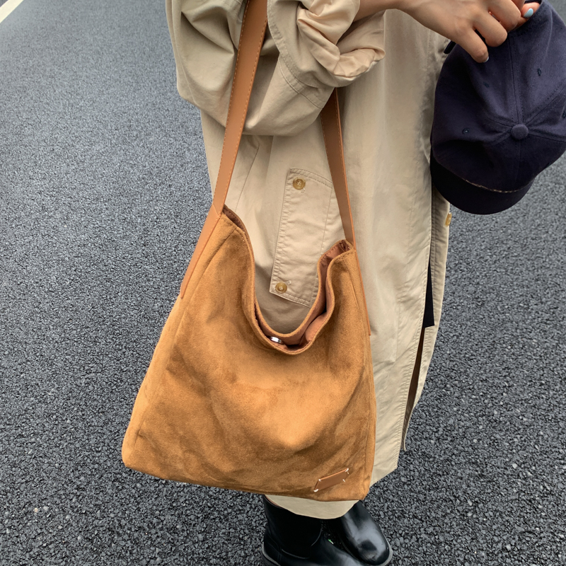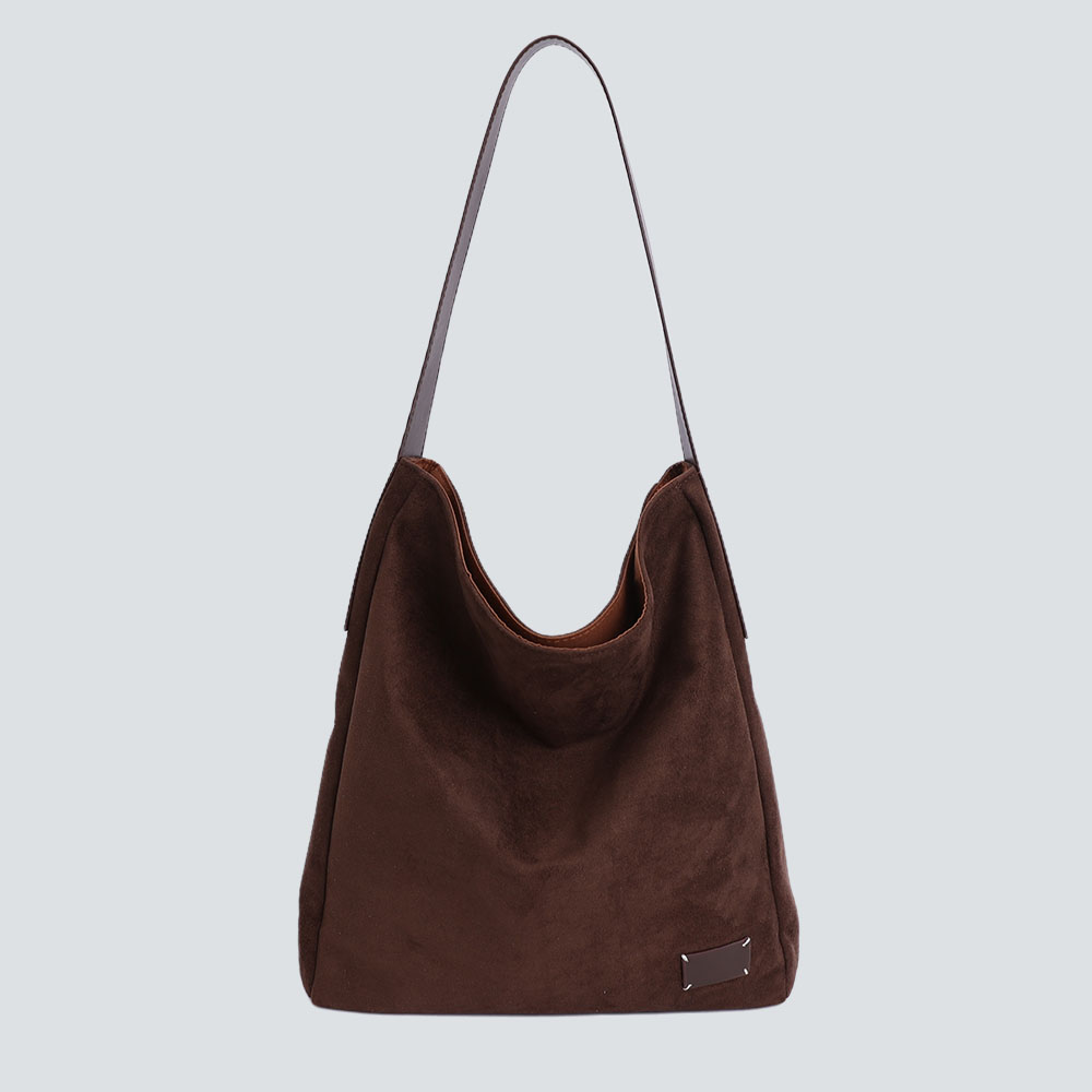 Crafted for the modern minimalist, this slouchy hobo bag redefines relaxed luxury through intentional softness and simplicity. Made from velvety, high-quality suede (in warm earthy hues), its unstructured oversized silhouette balances laid-back ease with quiet refinement—anchored by a sleek signature label that adds subtle, elevated character.The generously sized interior holds daily essentials (laptop, wallet, cosmetics) without bulk, while the wide, soft shoulder strap ensures comfortable all-day wear. Designed to complement tailored blazers, relaxed knits, or denim alike, this bag is more than an accessory: it’s a timeless staple that adds a layer of tactile elegance to every ensemble, aging beautifully with use.