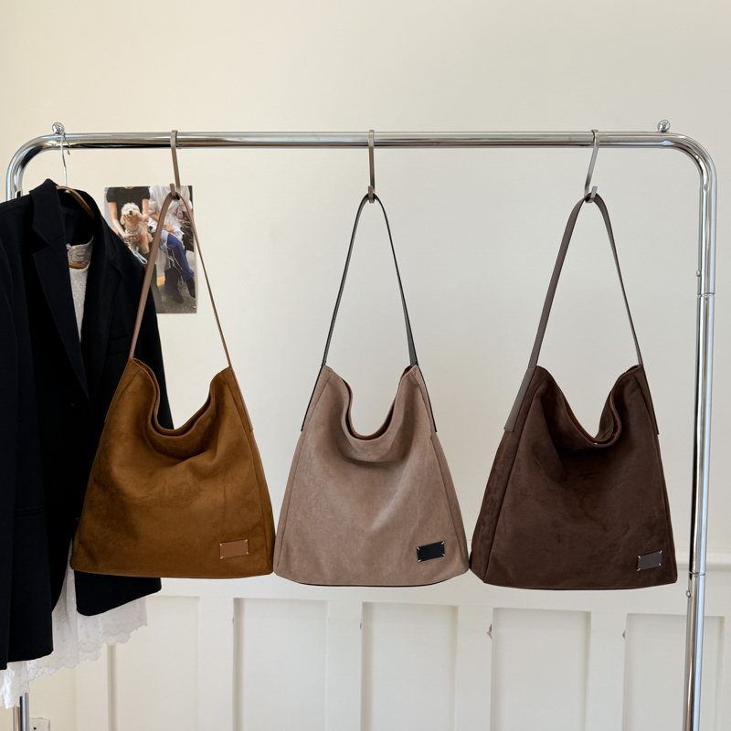 Elevate casual-chic style with this plush suede hobo: slouchy oversized silhouette, soft texture, and understated signature label—blending tactile luxury with effortless versatility.#3616