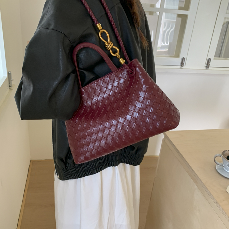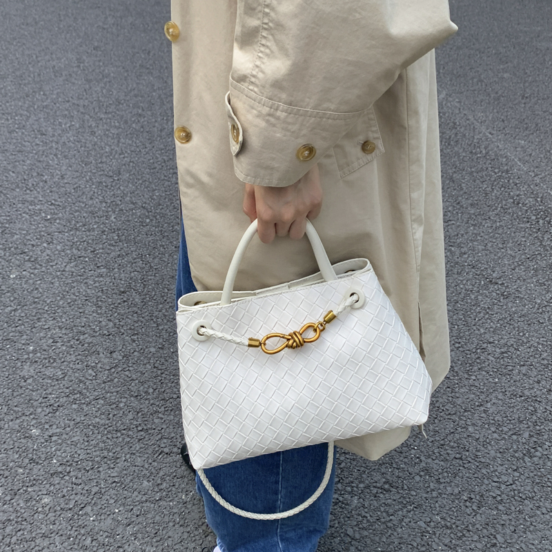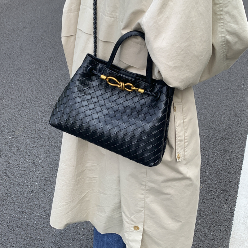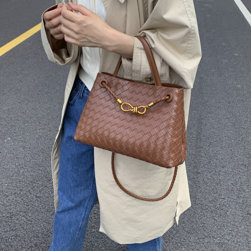 Artisanal woven texture elevates leather elegance; the metal lock buckle adds vintage charm. Dual-carry (handheld/crossbody) design suits versatile occasions—a luxury staple for daily styling.#5620