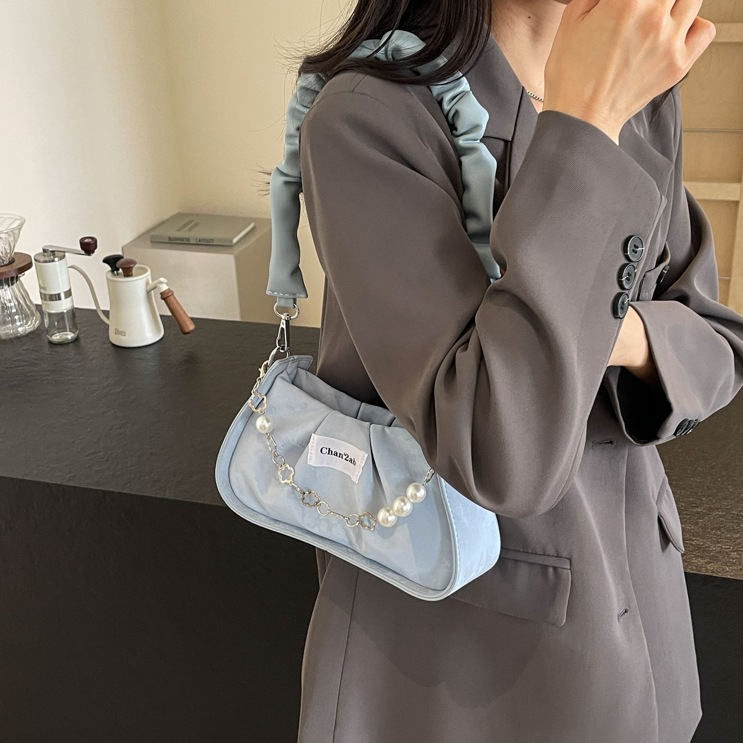 Velvet Ruched Top-Handle Bag with Pearl Accents