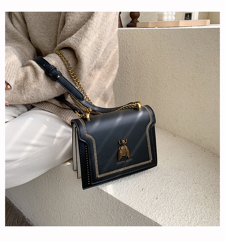 Crafted for the connoisseur of iconic design, this structured crossbody redefines luxury through intentional embellishment and precision. Made from smooth, high-quality leather (in rich, sophisticated hues), its crisp silhouette balances polished elegance with tactile depth—anchored by intricate contrast stitching and a statement bee accent that adds a layer of timeless, iconic character.The compact yet functional interior holds daily essentials (phone, cardholder, lipstick) without bulk, while the convertible chain-leather strap adapts seamlessly to daytime errands or evening events. Designed to age gracefully (retaining its polished appeal over time), this bag is more than an accessory: it’s a wearable symbol of refined taste that infuses every look with understated opulence.