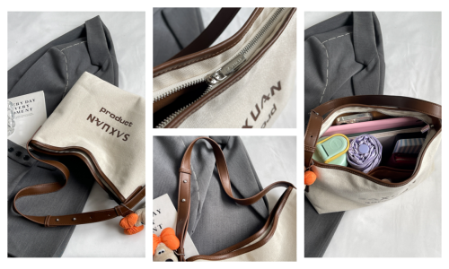 This hobo bag reimagines casual elegance through clean lines and thoughtful details. Made from durable, soft-woven canvas, its neutral tone serves as a versatile backdrop for the subtle branded lettering—striking a perfect balance between minimalism and quiet personality.