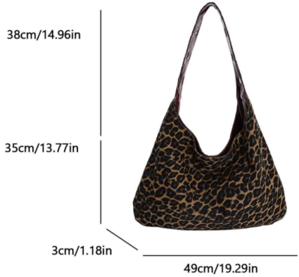Crafted for the bold yet refined style enthusiast, this hobo bag reimagines animal-print luxury through intentional texture and silhouette. Made from a soft, durable fabric (in rich, modern leopard hues), its slouchy oversized shape balances effortless ease with polished edge—enhanced by contrast leather trim that adds a subtle, elevated detail.The spacious interior accommodates daily essentials (laptop, tote, cosmetics) without sacrificing the relaxed silhouette, while the wide shoulder strap ensures comfortable all-day wear. Designed to be a statement piece that complements both casual denim and tailored separates, this bag is a celebration of unapologetic style: bold, versatile, and inherently luxurious.
