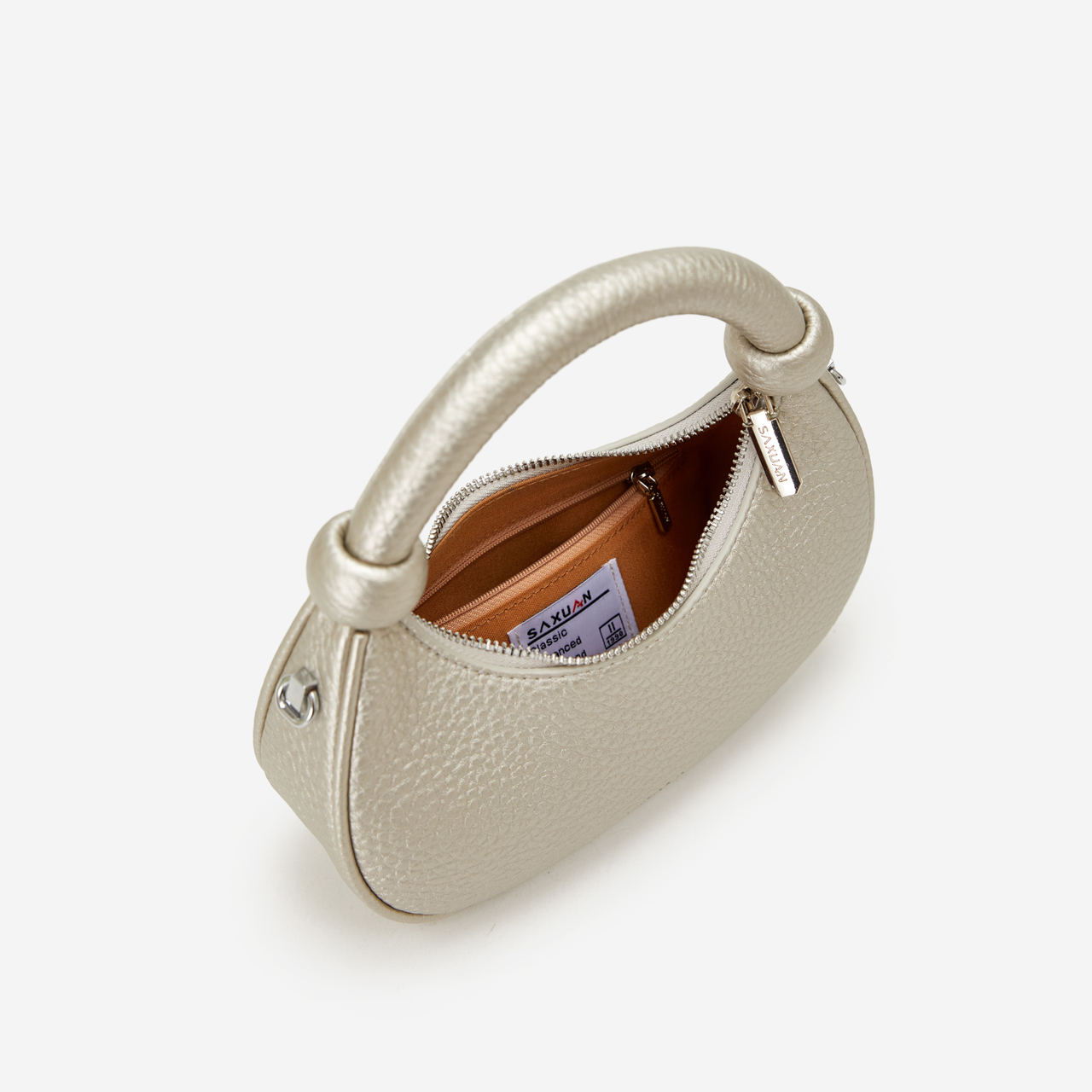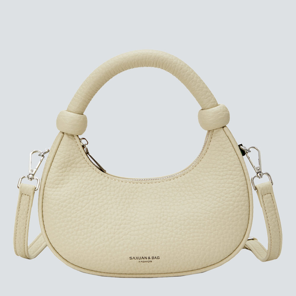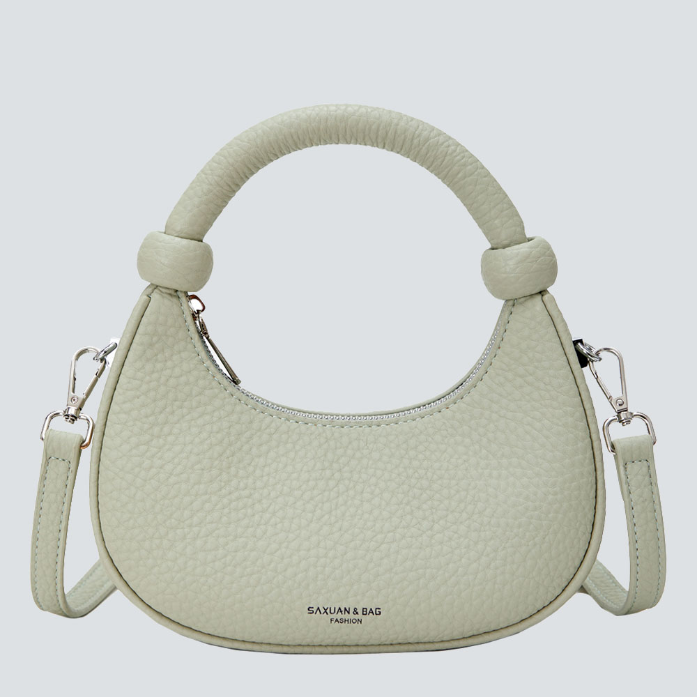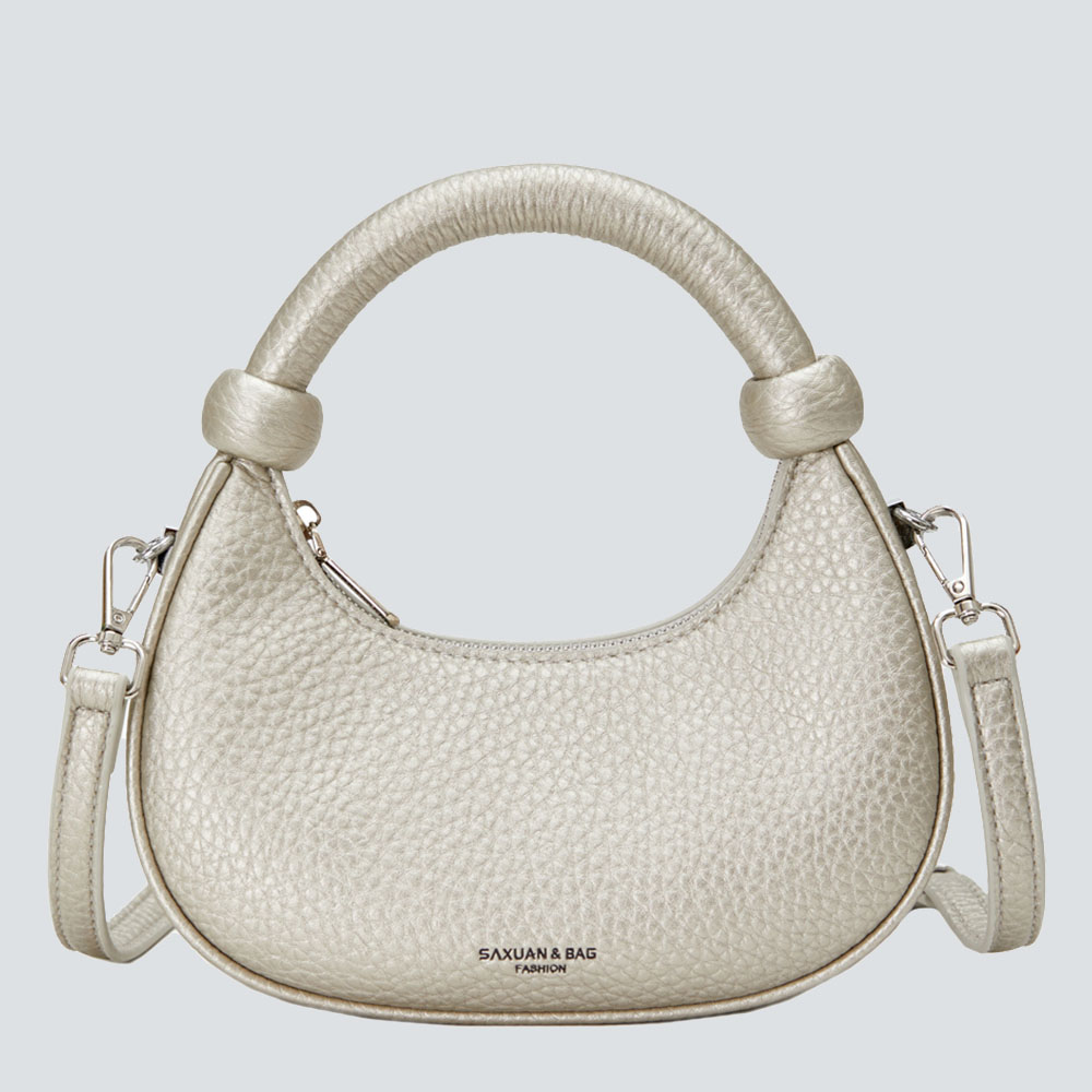 As “effortless elegance” becomes the core of styling, a bag that balances detail and relaxation is the finishing touch for a textured wardrobe—this SAXUAN crescent bag, with its “soft yet clever” design, becomes a textured carrier for daily looks.Crafted from pebbled leather, it feels gently grainy to the touch; the slouchy-yet-structured silhouette holds essentials like phones and card holders without feeling bulky. The iconic ball-handle breaks the monotony of conventional bags, its rounded lines echoing the crescent shape—hand-carrying exudes elegant presence, while the detachable strap unlocks casual crossbody wear, fitting commutes, coffee dates, short trips, and more.Cool black suits autumn-winter dark coats, lustrous silver complements party sequin dresses, soft beige pairs with spring-summer linen shirts, and fresh light green brightens daily looks—four gender-neutral hues suit commute, light French, and minimalist styles alike, quietly elevating outfits with texture and lines in the details.A truly great bag isn’t about showing off; it’s about “low-key cleverness” woven into daily life: when you carry it by the ball-handle through office lobbies, or crossbody it while wandering street cafes, its soft shape and delicate texture become “unintentional elegance” in others’ eyes—that’s the texture philosophy of the SAXUAN crescent bag: moving daily life with details, carrying style with relaxation.