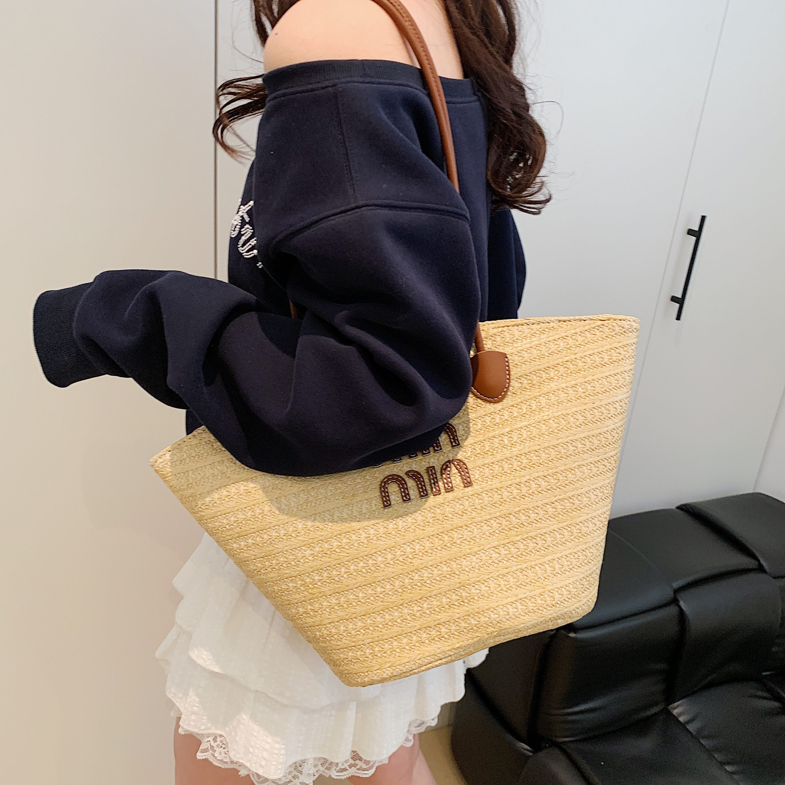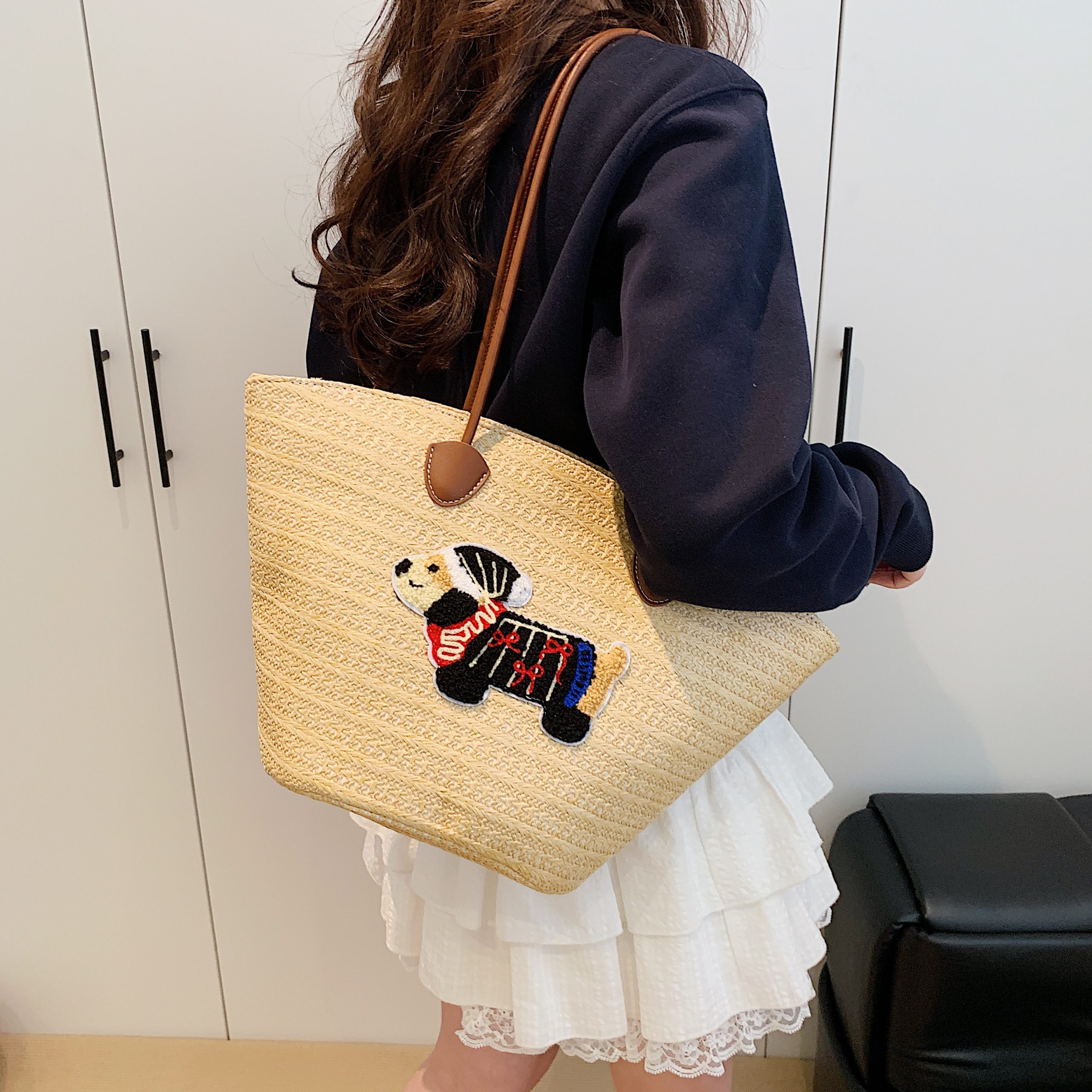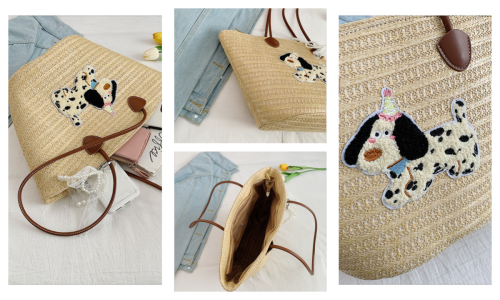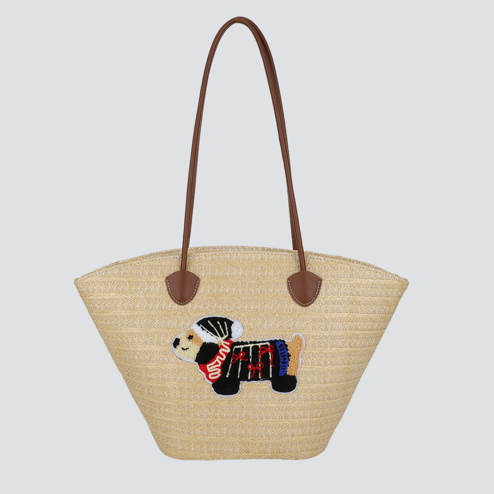 Crafted with meticulous artisanal weaving, this straw tote balances natural texture with whimsical elegance. The breathable straw material offers lightweight comfort ideal for sunlit days, while hand-embroidered motifs (from playful creatures to subtle lettering) add a unique, personalized touch. Delicate lace ribbons and smooth leather accents elevate the design, merging casual charm with refined details. Its generous interior accommodates daily essentials—from sunscreen to a paperback—without sacrificing sleek silhouette. Versatile enough for beach getaways, café strolls, or weekend markets, this tote is a celebration of relaxed sophistication: a piece that marries artisanal craft with effortless summer style.